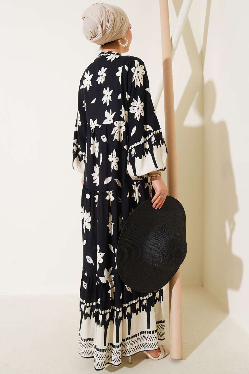 Çiçek Desenli Piliseli Şifon Etek Kahve
