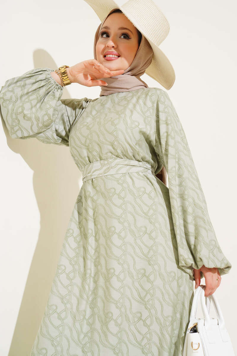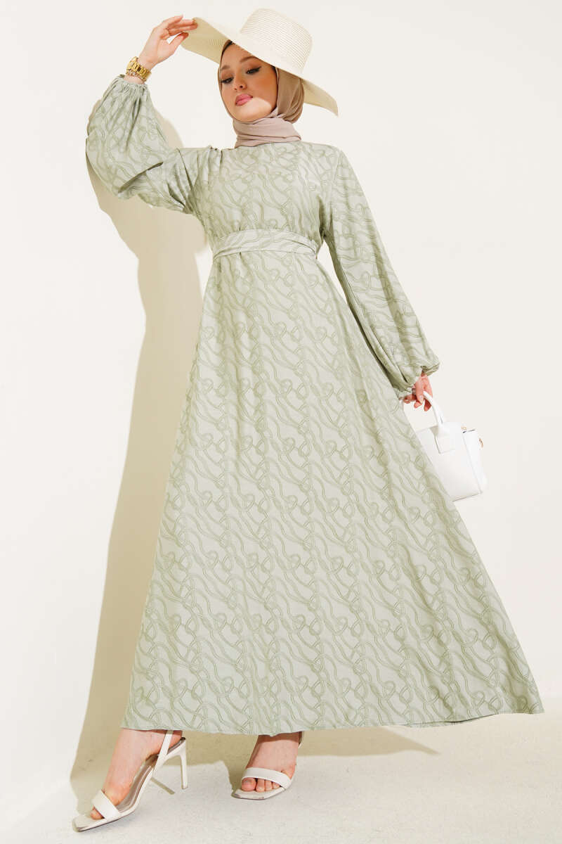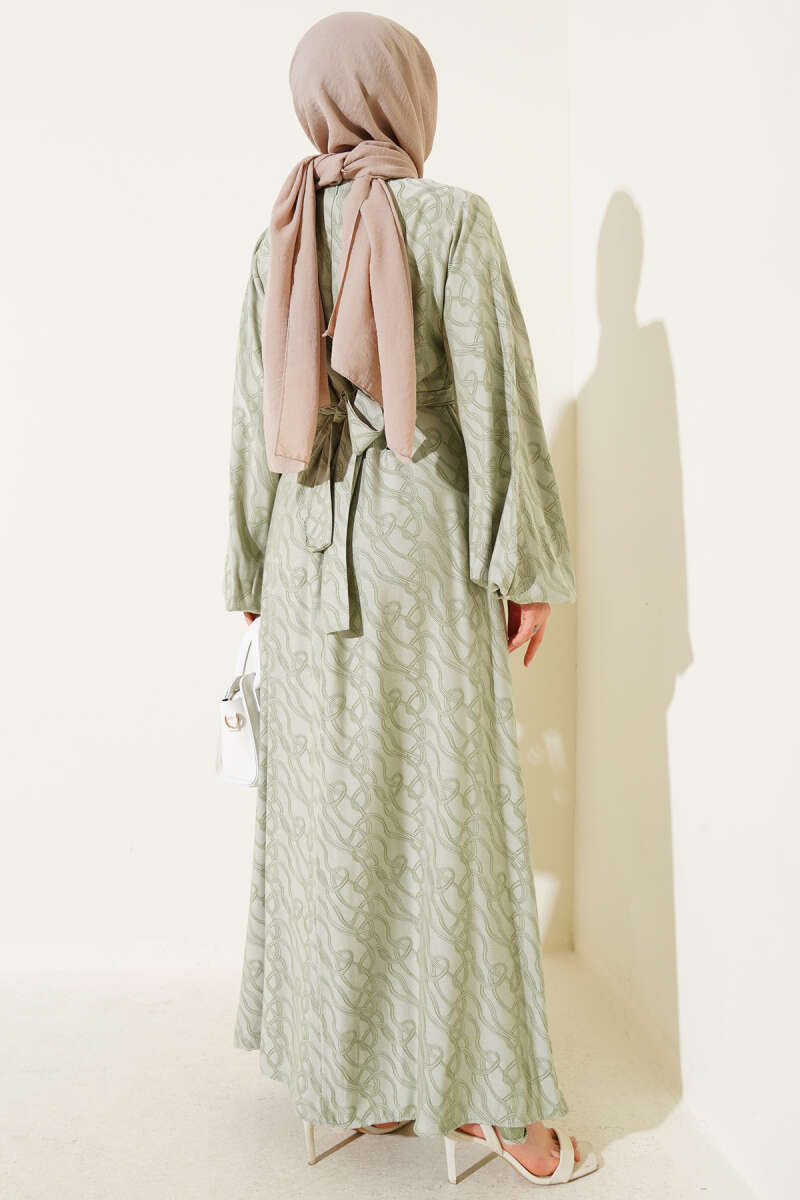 Pelerin Detaylı Pul Payet Abiye Elbise Haki