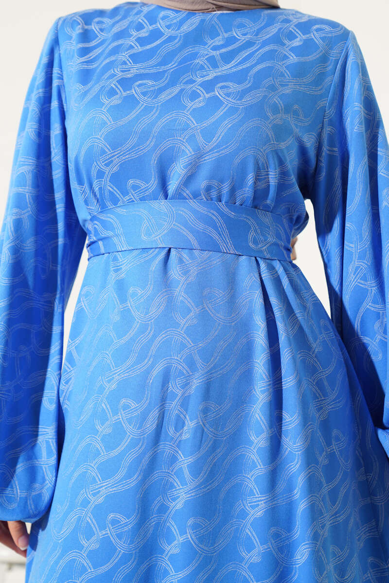 Paisley Desen Bel Lastikli Elbise Lacivert