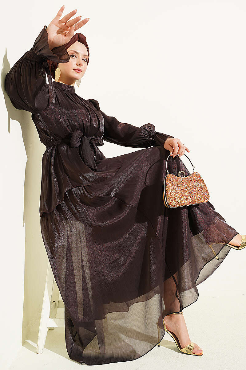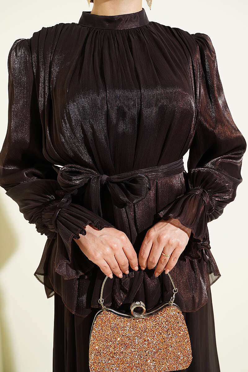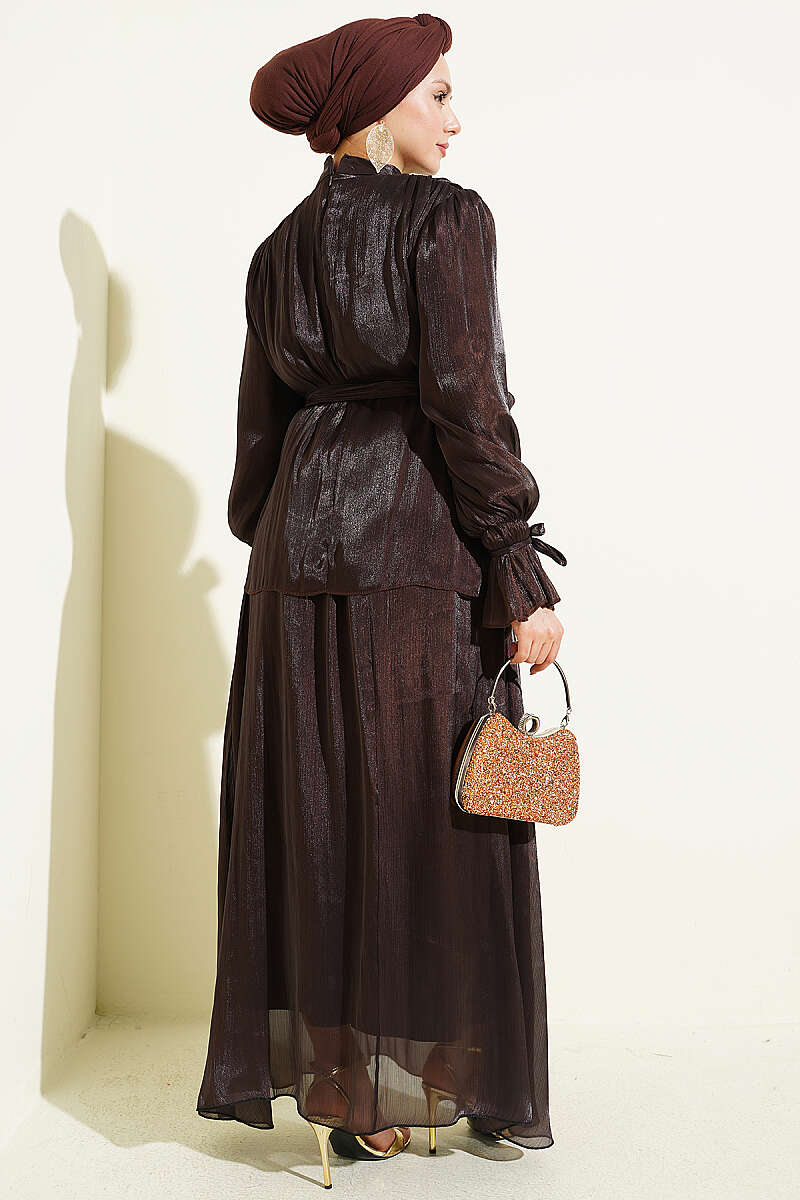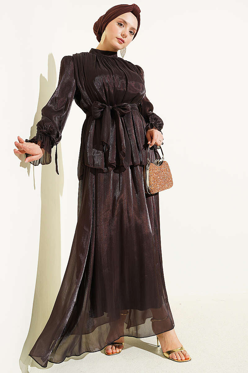Bilek Lastikli Etekli Abiye İkili Takım Acı Kahve