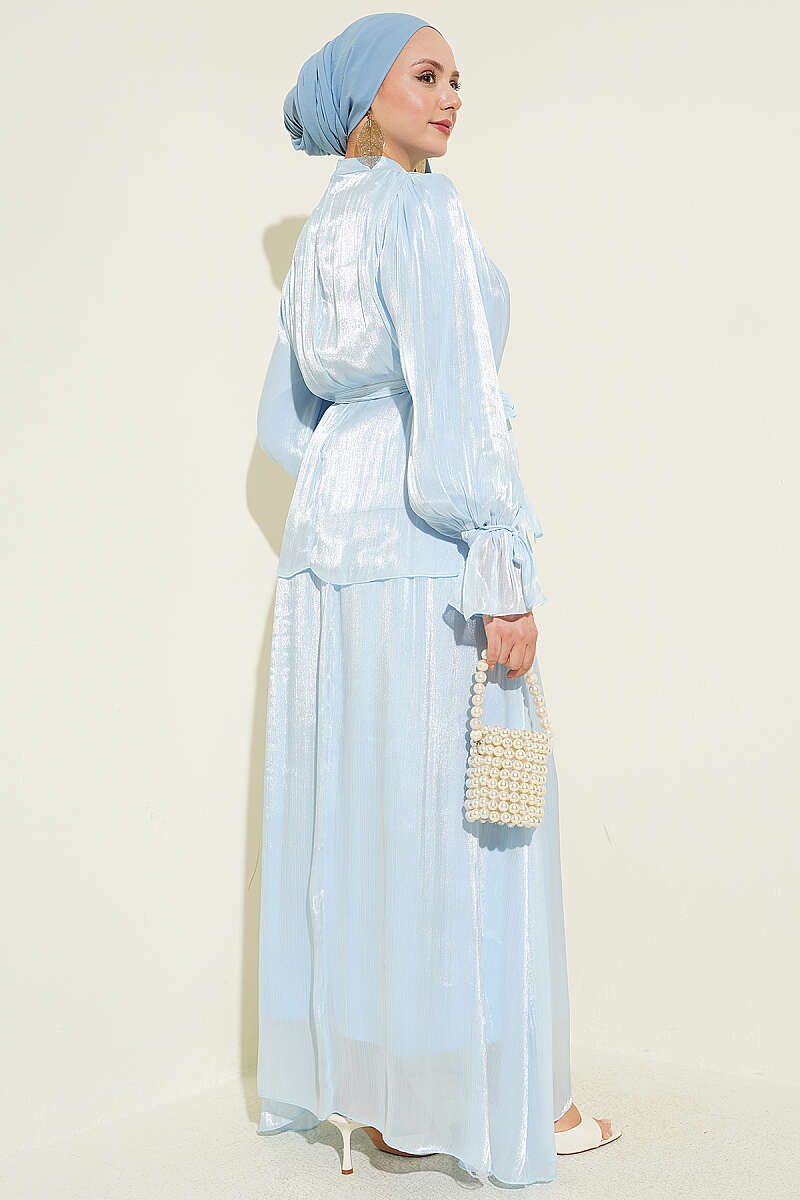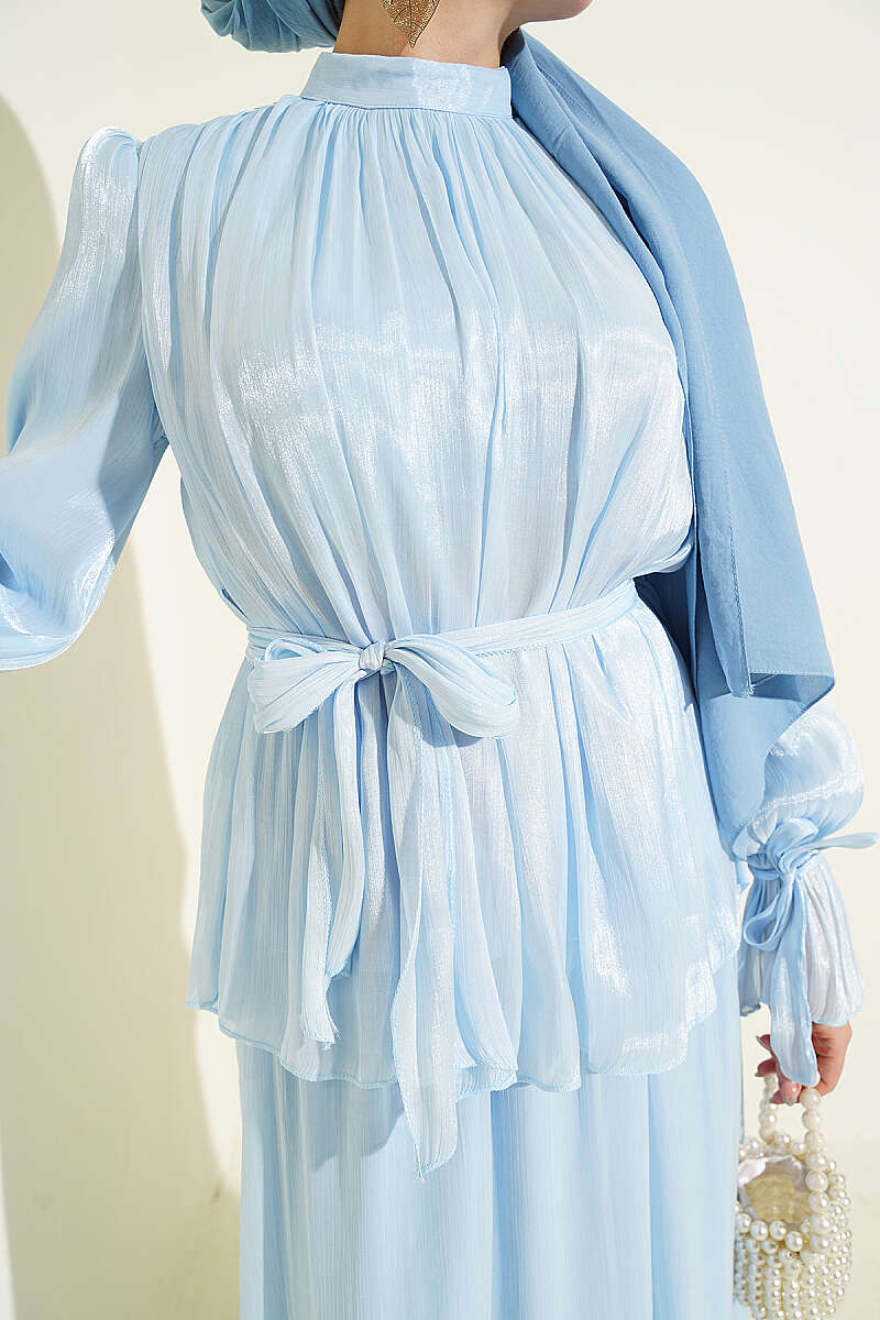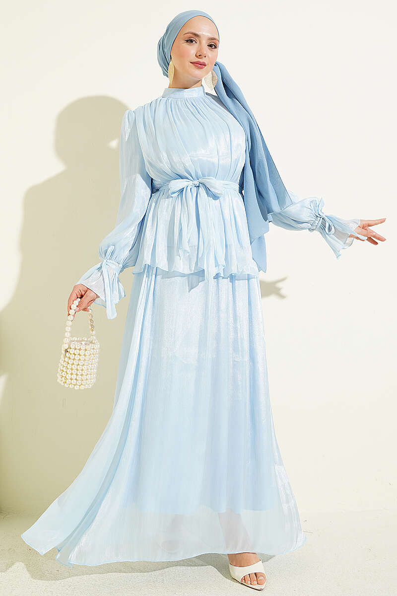 Bilek Lastikli Etekli Abiye İkili Takım Bebe Mavi