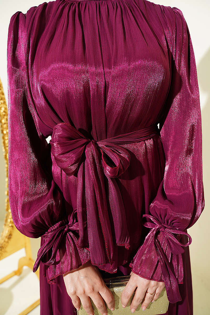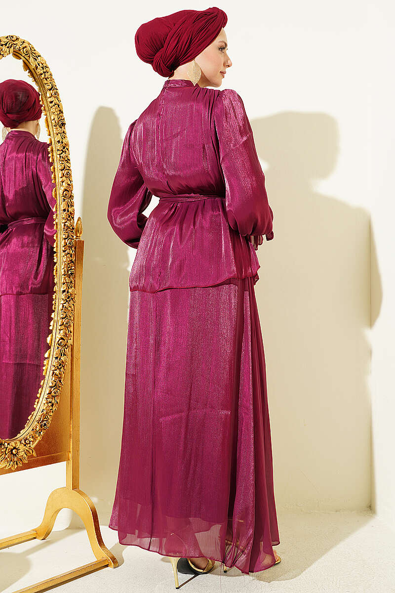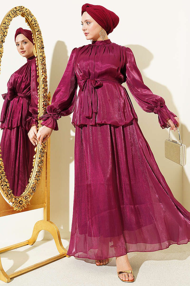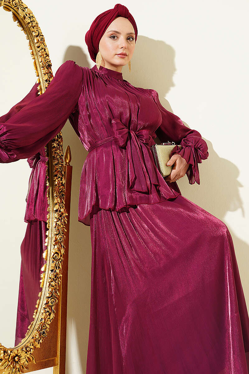 Bilek Lastikli Etekli Abiye İkili Takım Bordo
