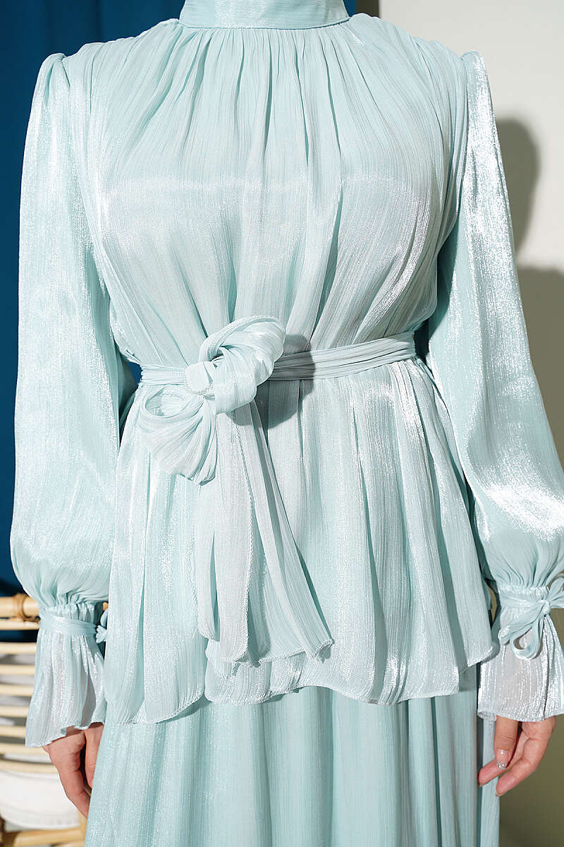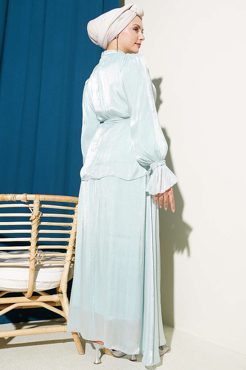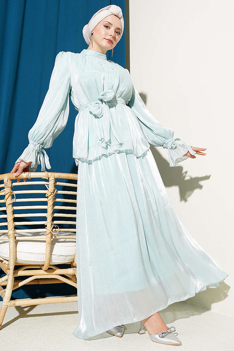 Bilek Lastikli Etekli Abiye İkili Takım Mint