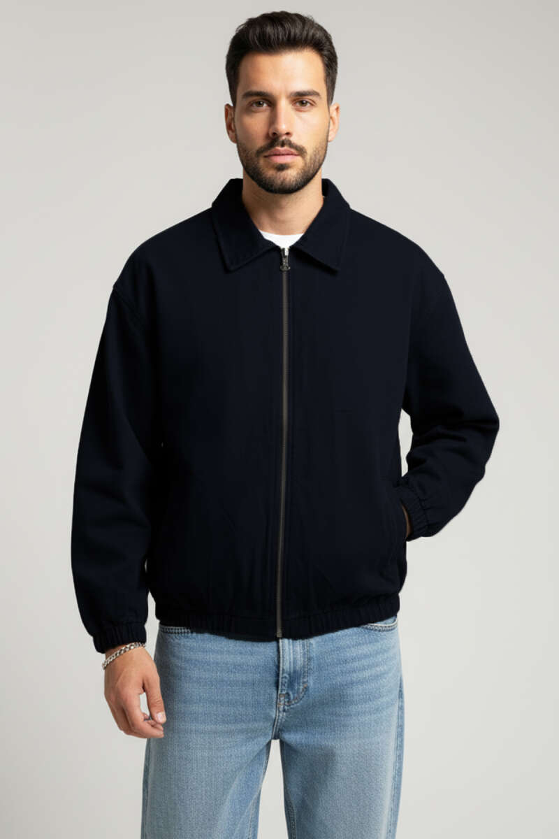 Geniş Cepli Fermuarlı Erkek Ceket Lacivert