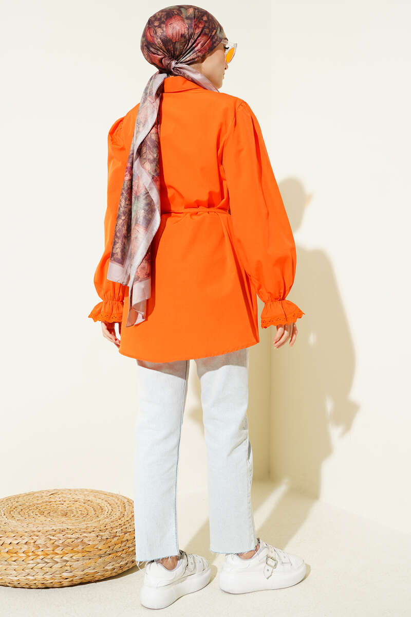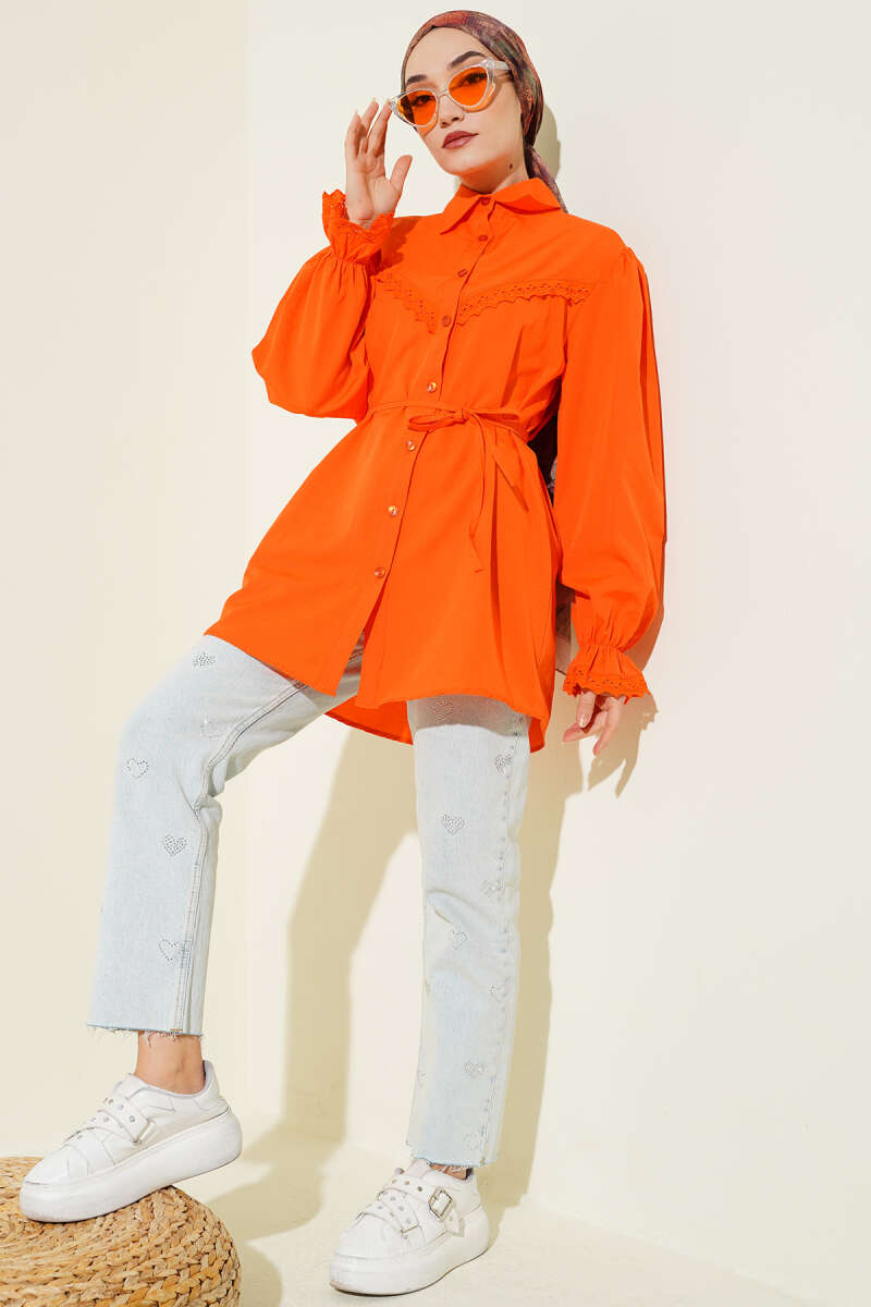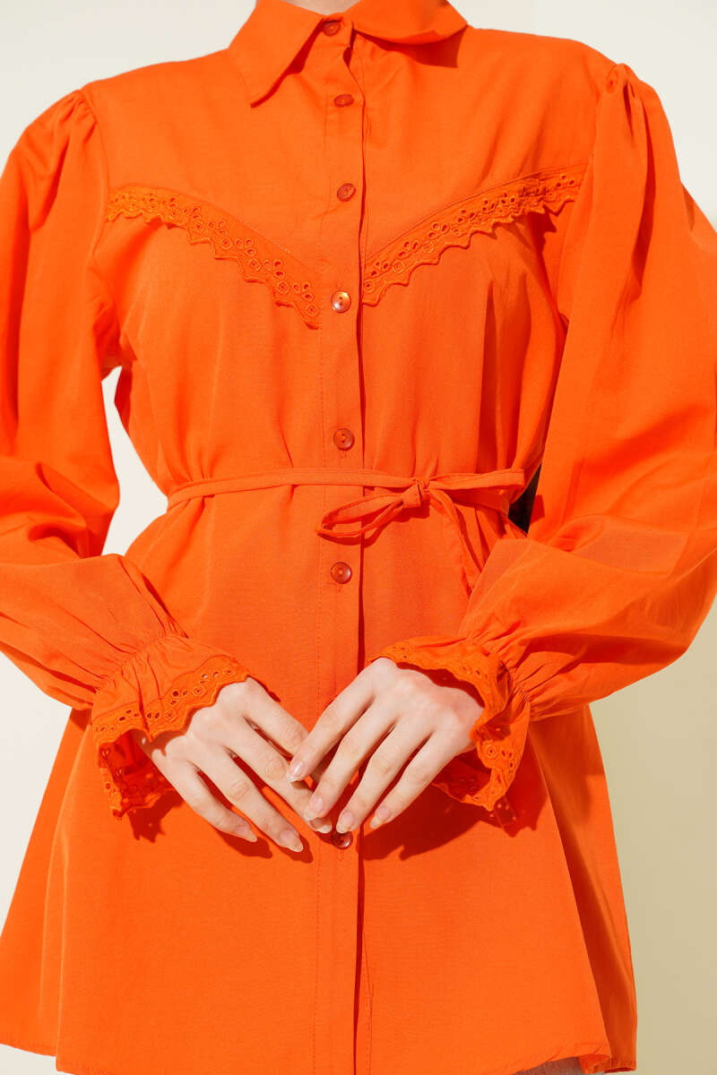 Bilek Lastikli Güpür Detaylı Gömlek Oranj