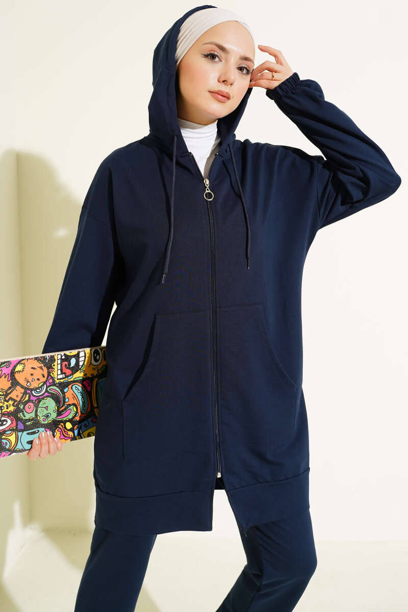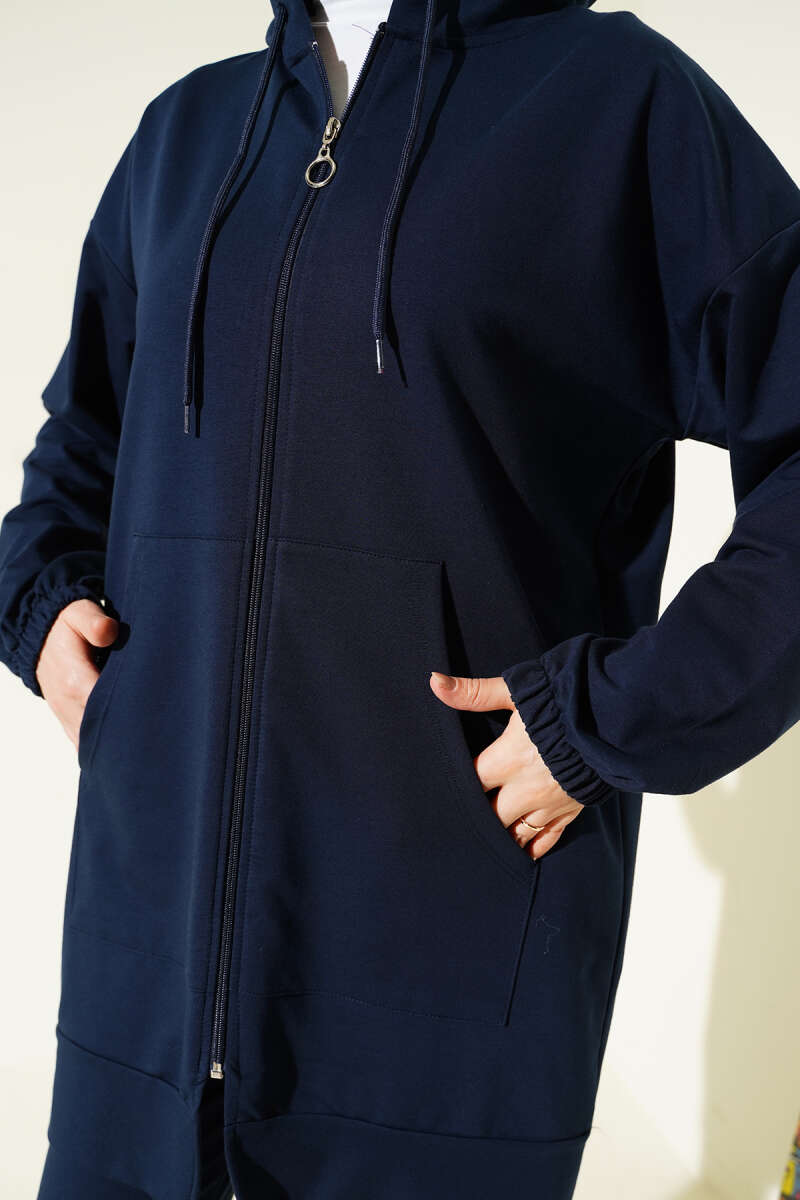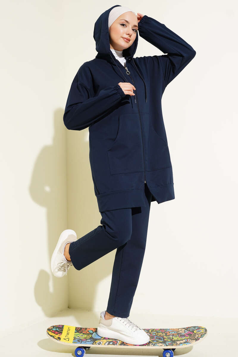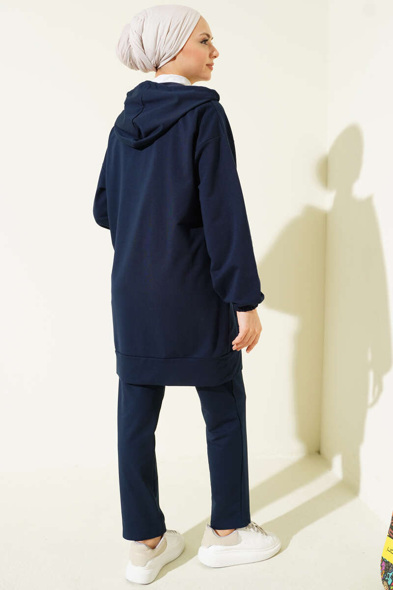Bilek Lastikli Kapüşonlu İkili Takım Lacivert
