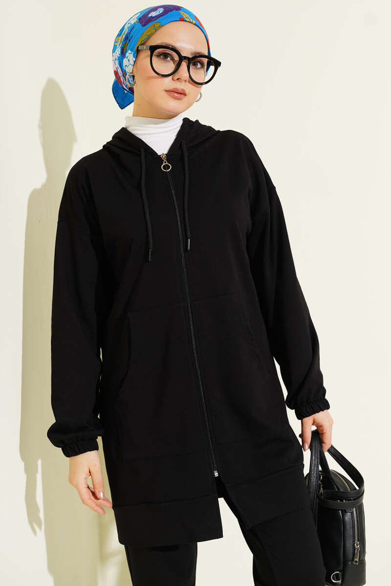Bilek Lastikli Kapüşonlu İkili Takım Siyah