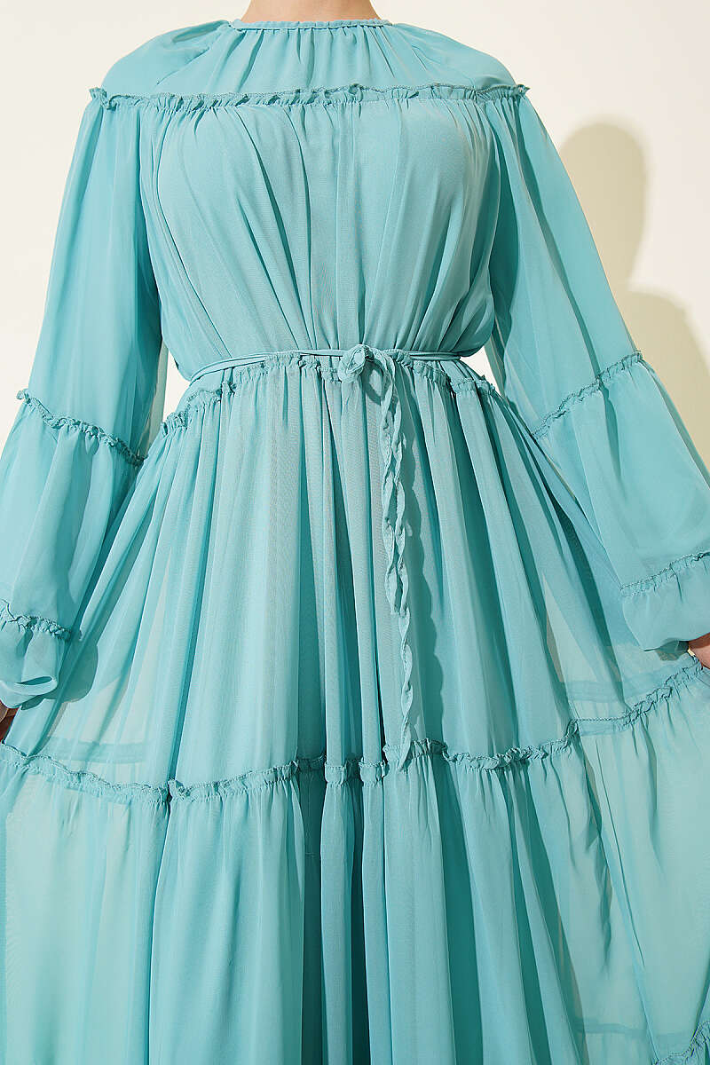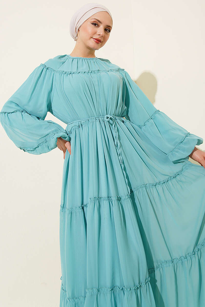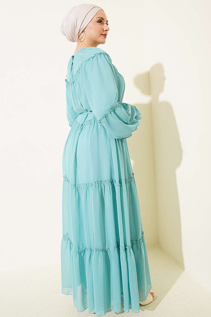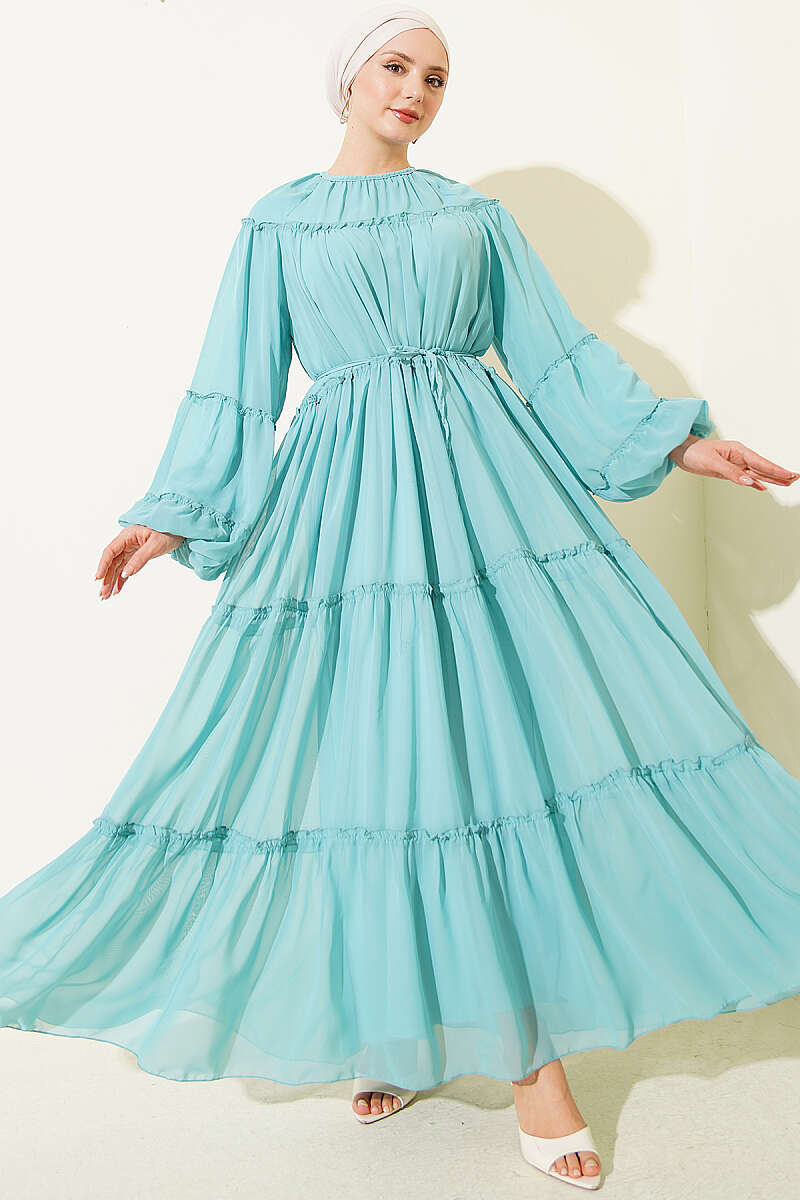 Bilek Lastikli Kat Kat Şifon Elbise Mint
