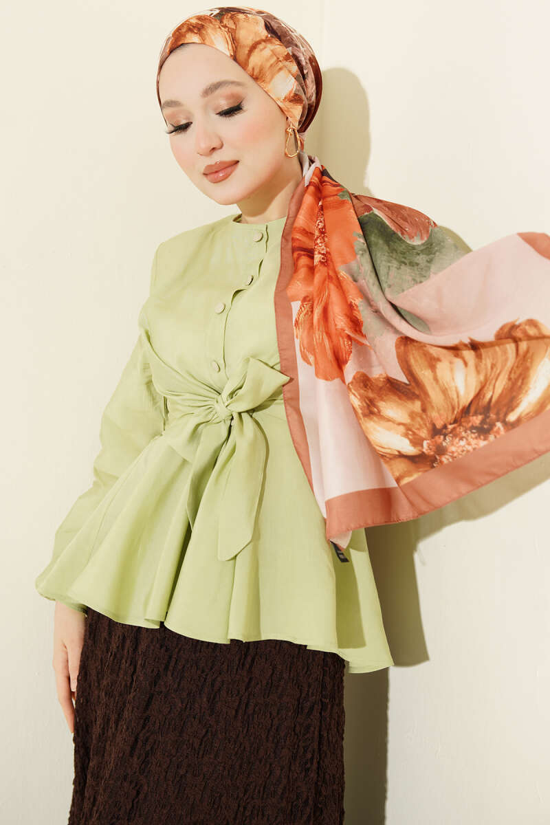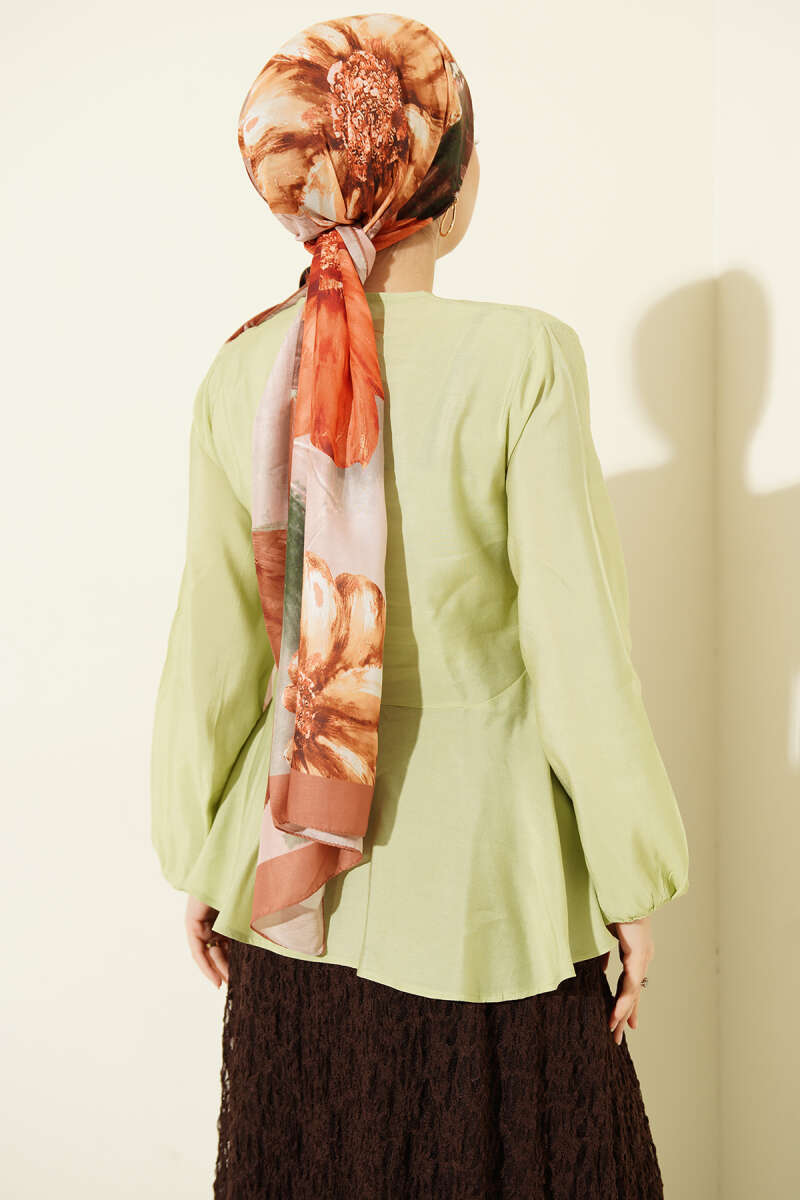 Bilek Lastikli Önü Bağlamalı Gömlek Çağla Yeşili