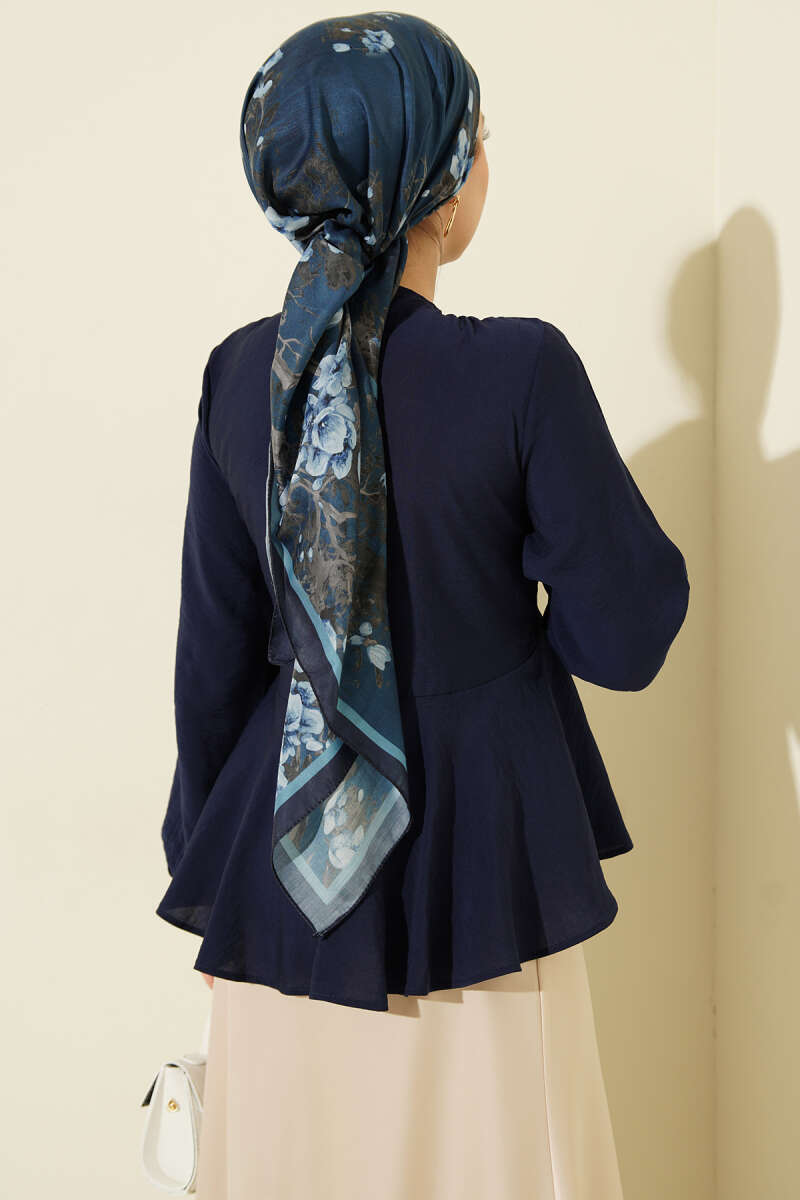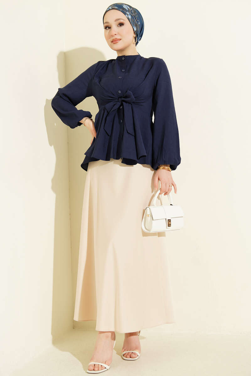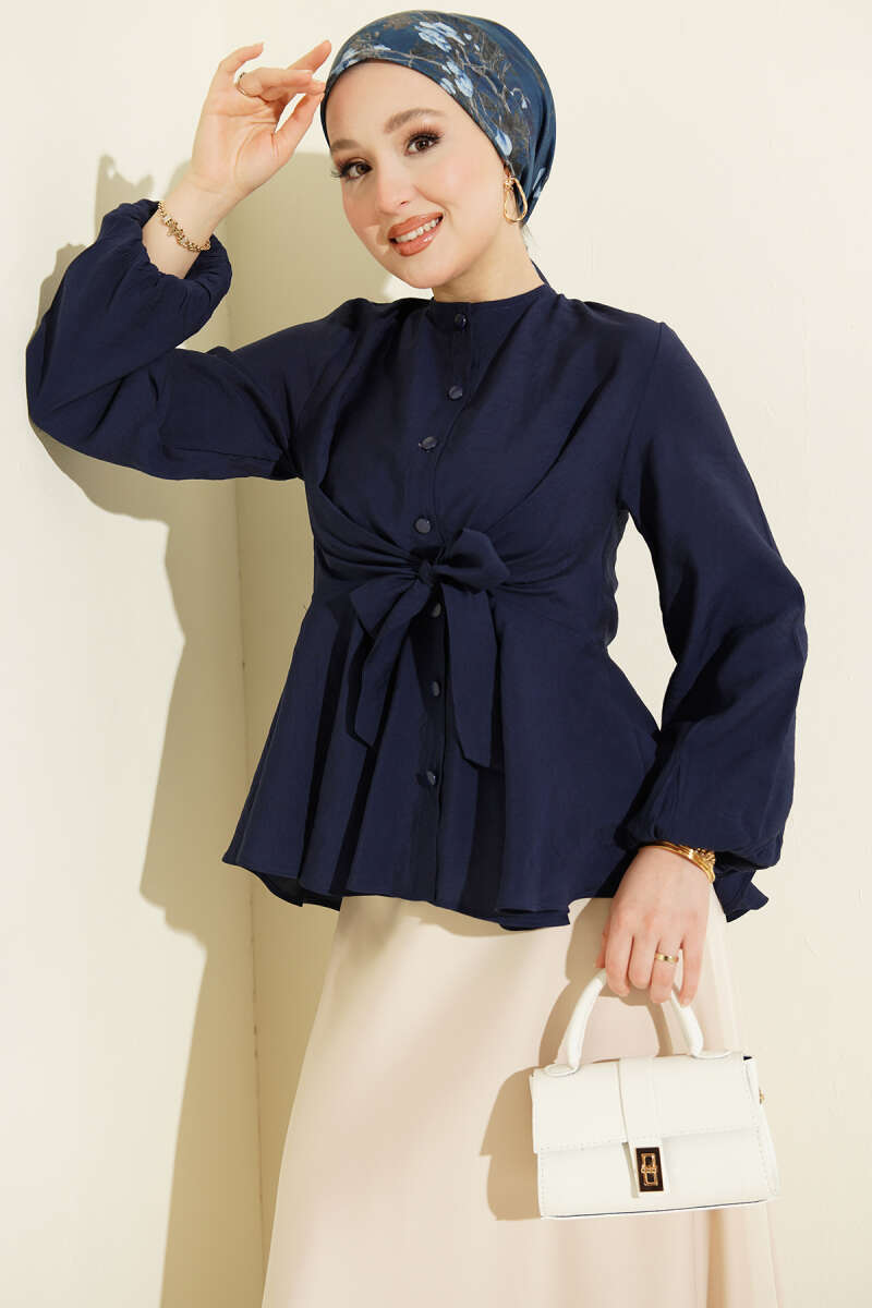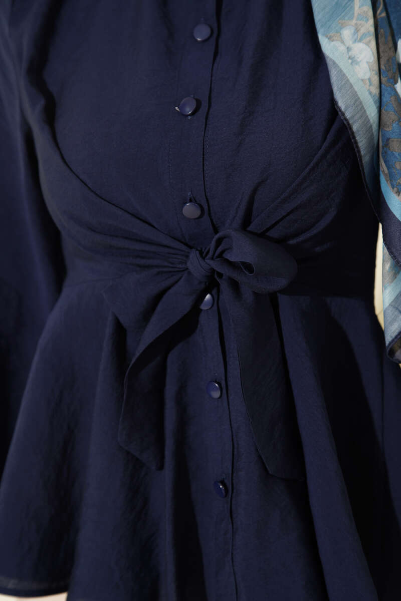 Bilek Lastikli Önü Bağlamalı Gömlek Lacivert