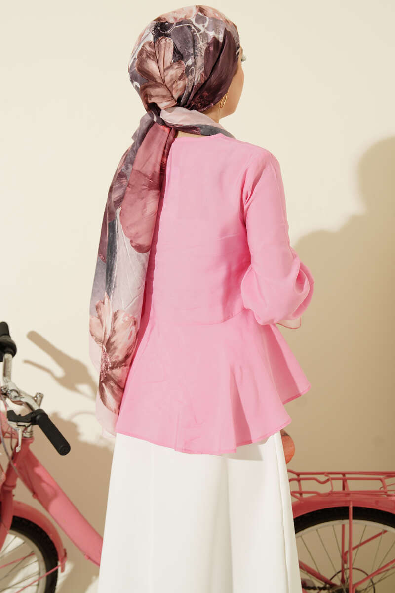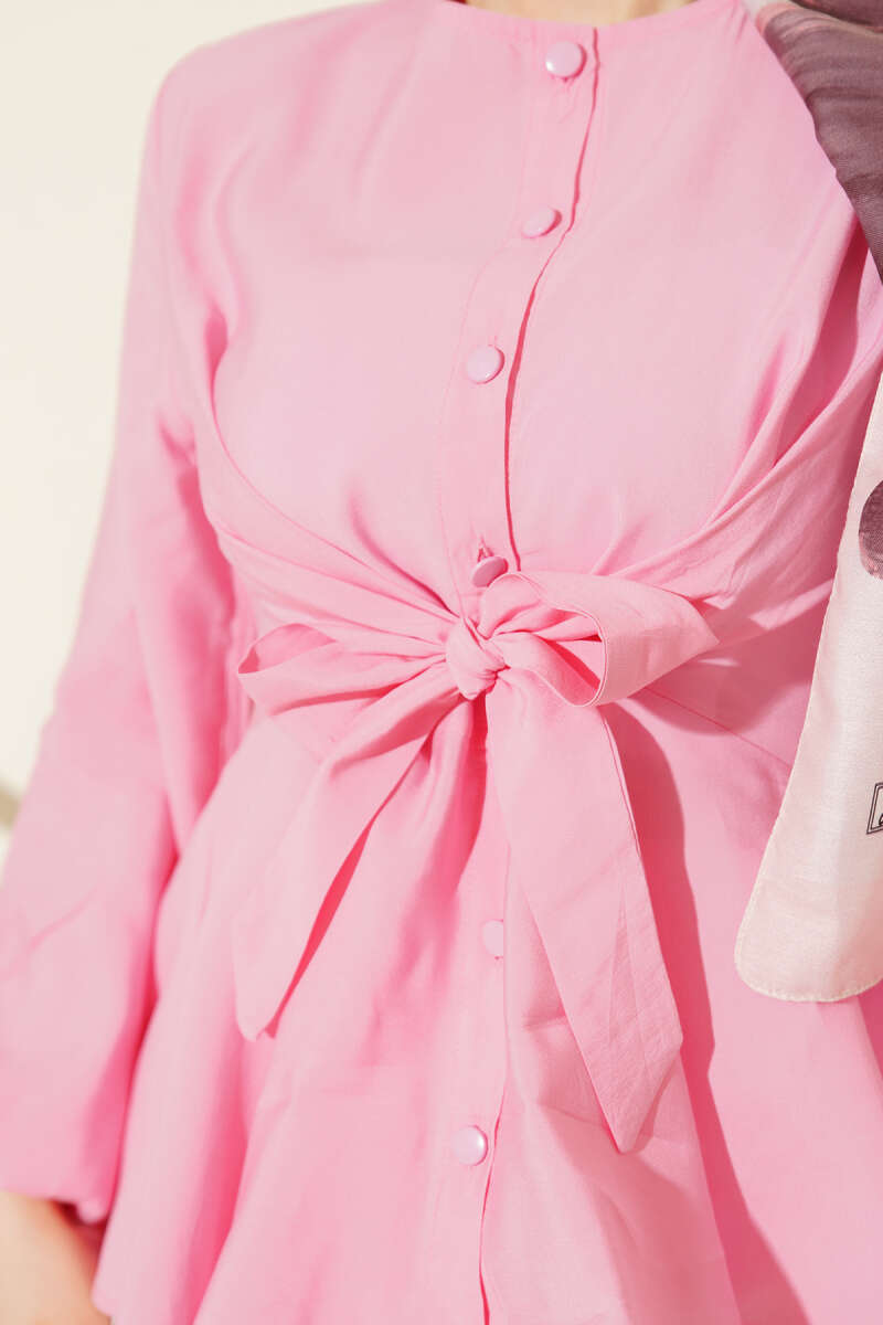 Bilek Lastikli Önü Bağlamalı Gömlek Pembe