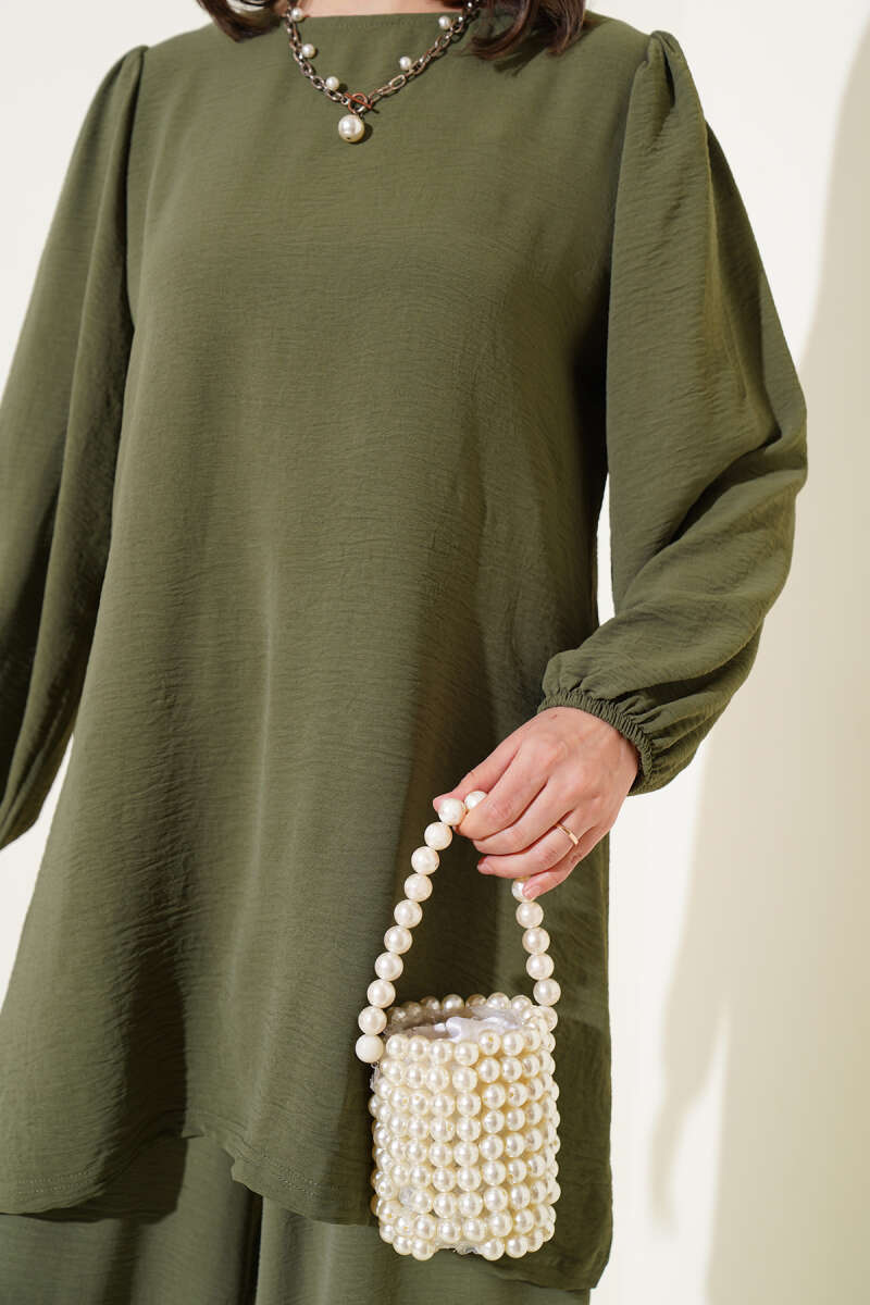 Dikiş Detaylı Basic Triko İkili Takım Haki