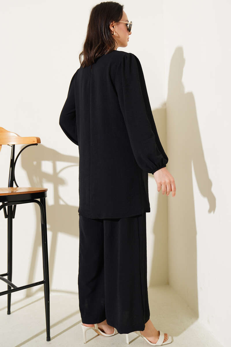 Dikiş Detaylı Basic Triko İkili Takım Siyah