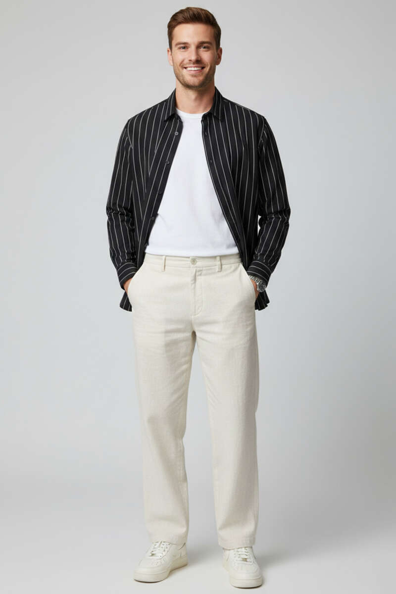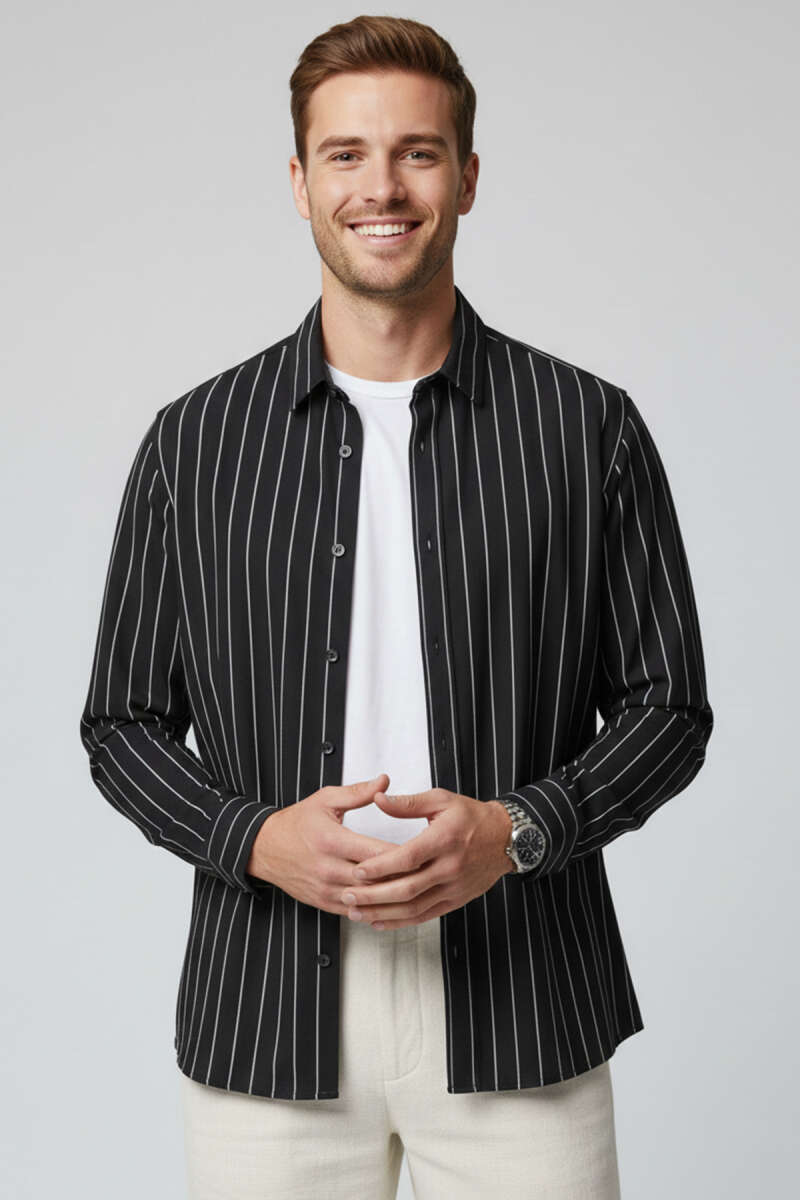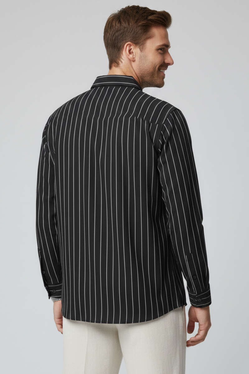 Bilek Manşetli Çizgili Erkek Gömlek Siyah
