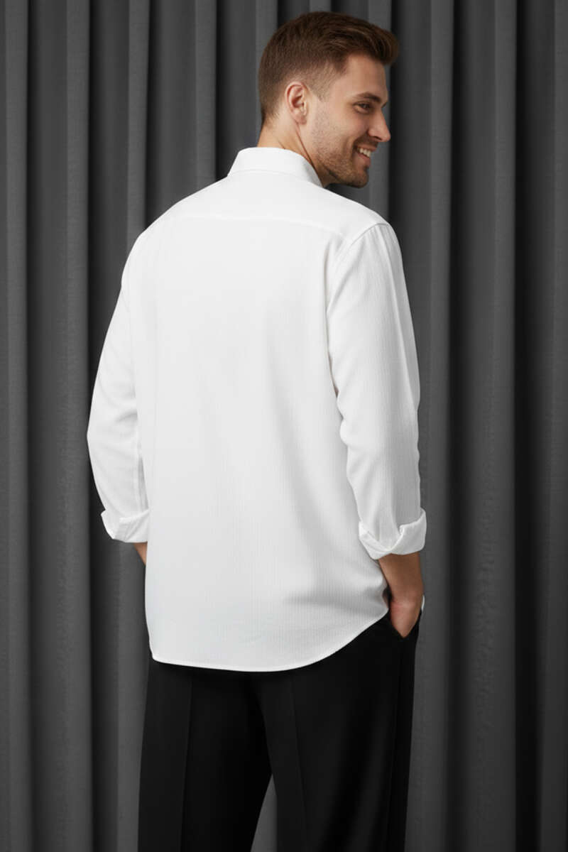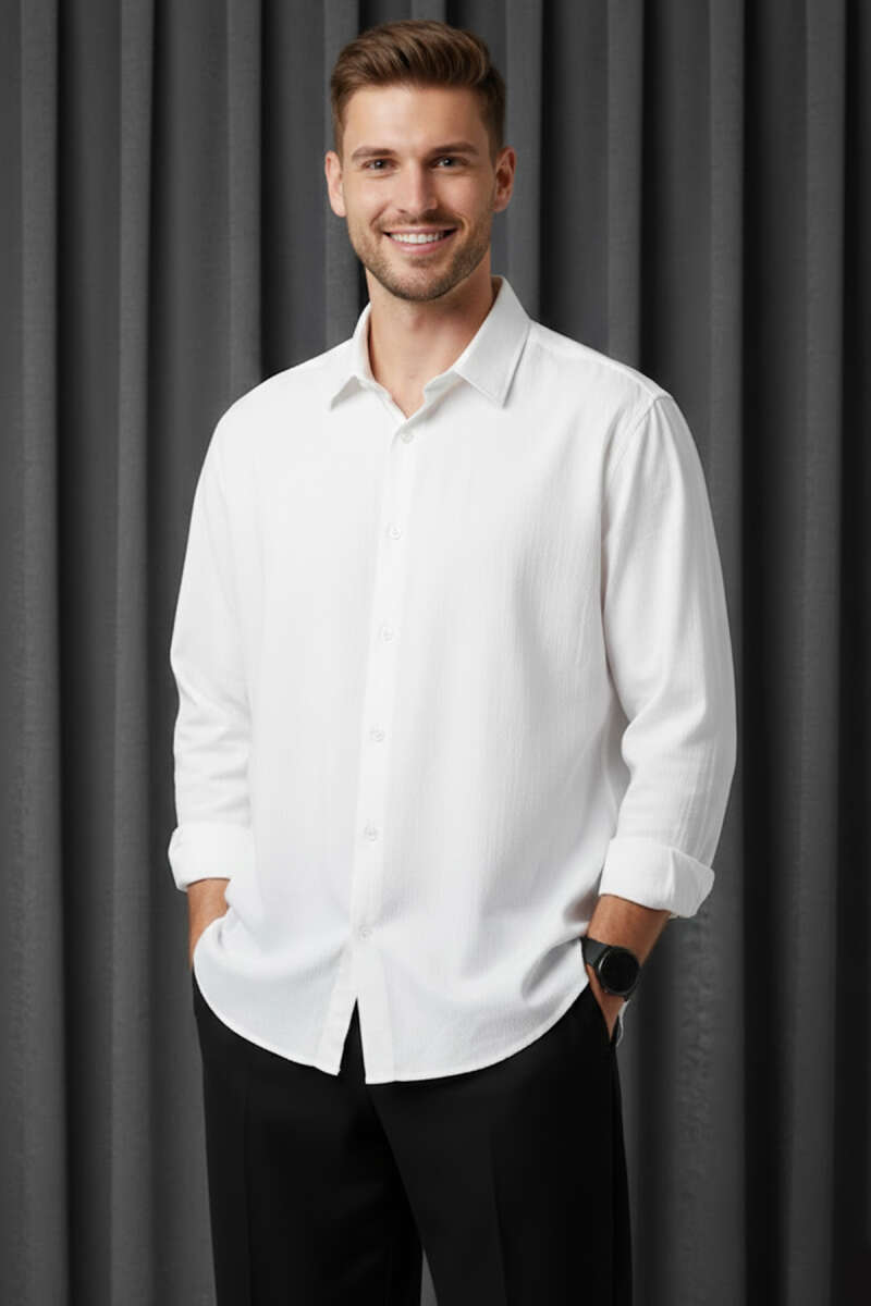 Bilek Manşetli Keten Erkek Gömlek Beyaz
