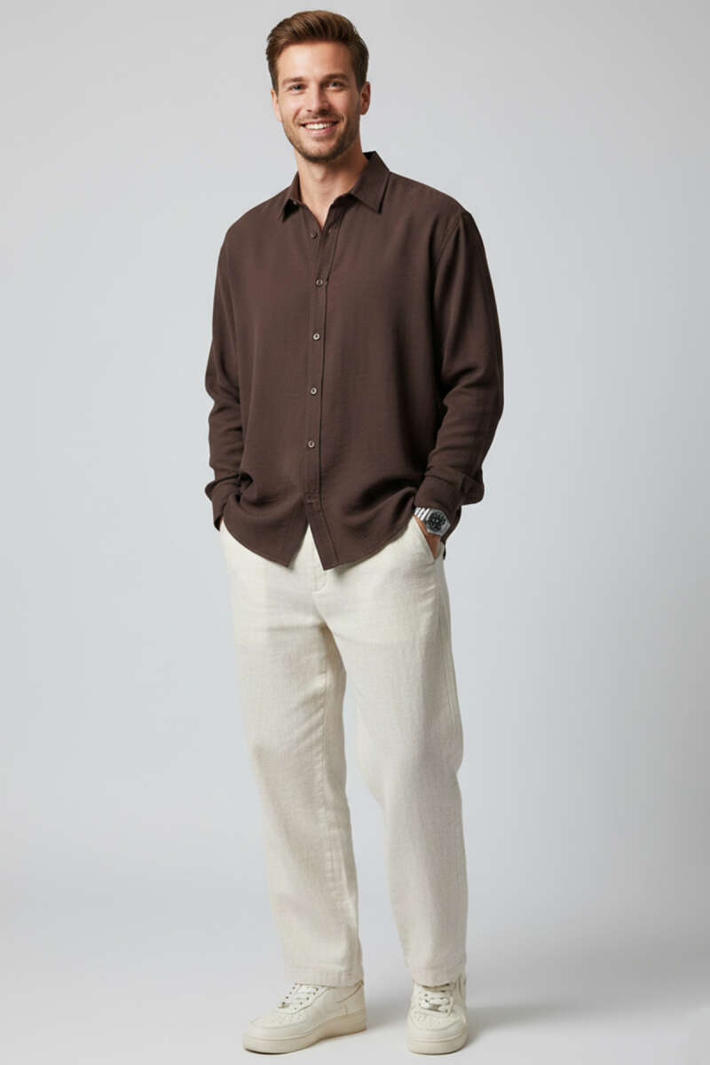 Çift Cepli Erkek Gömlek Bej