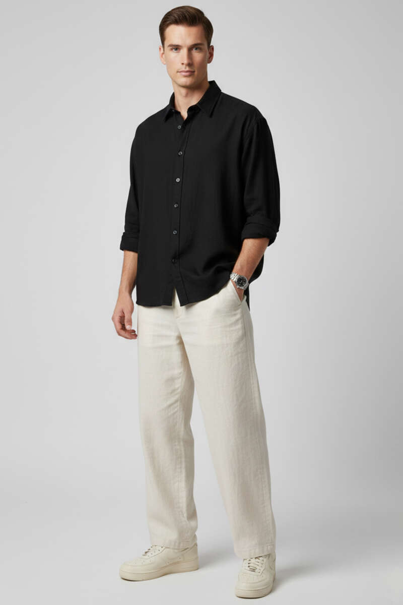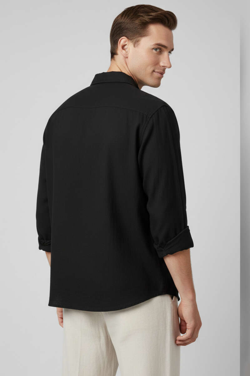 Bilek Manşetli Tensel Erkek Gömlek Siyah