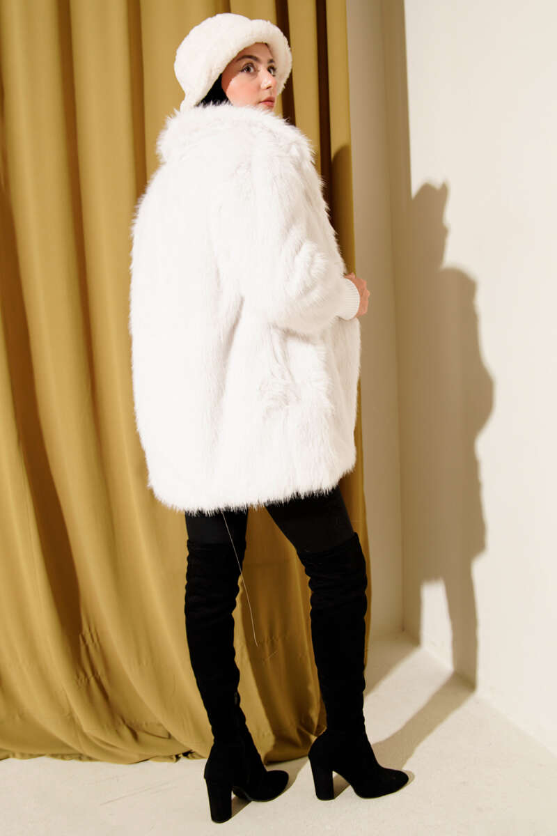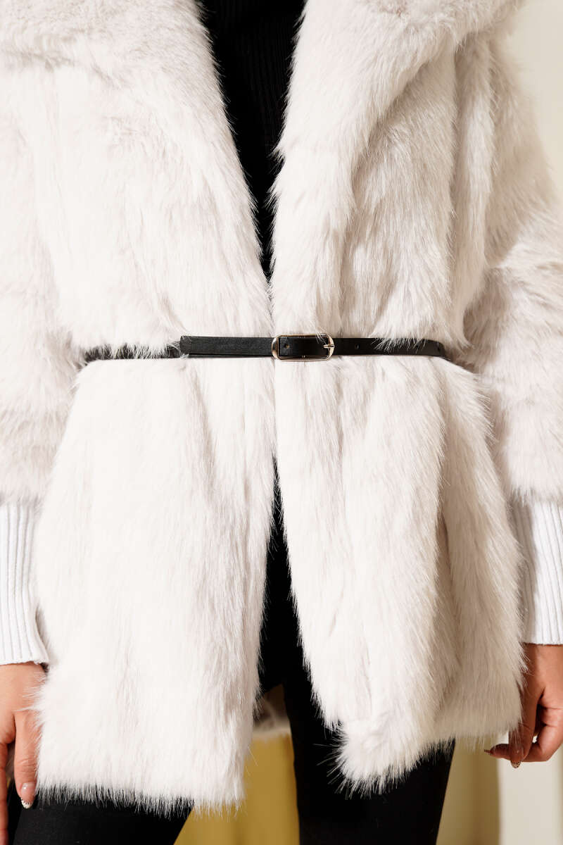 Bilek Ribanalı Kürklü Mont Latte