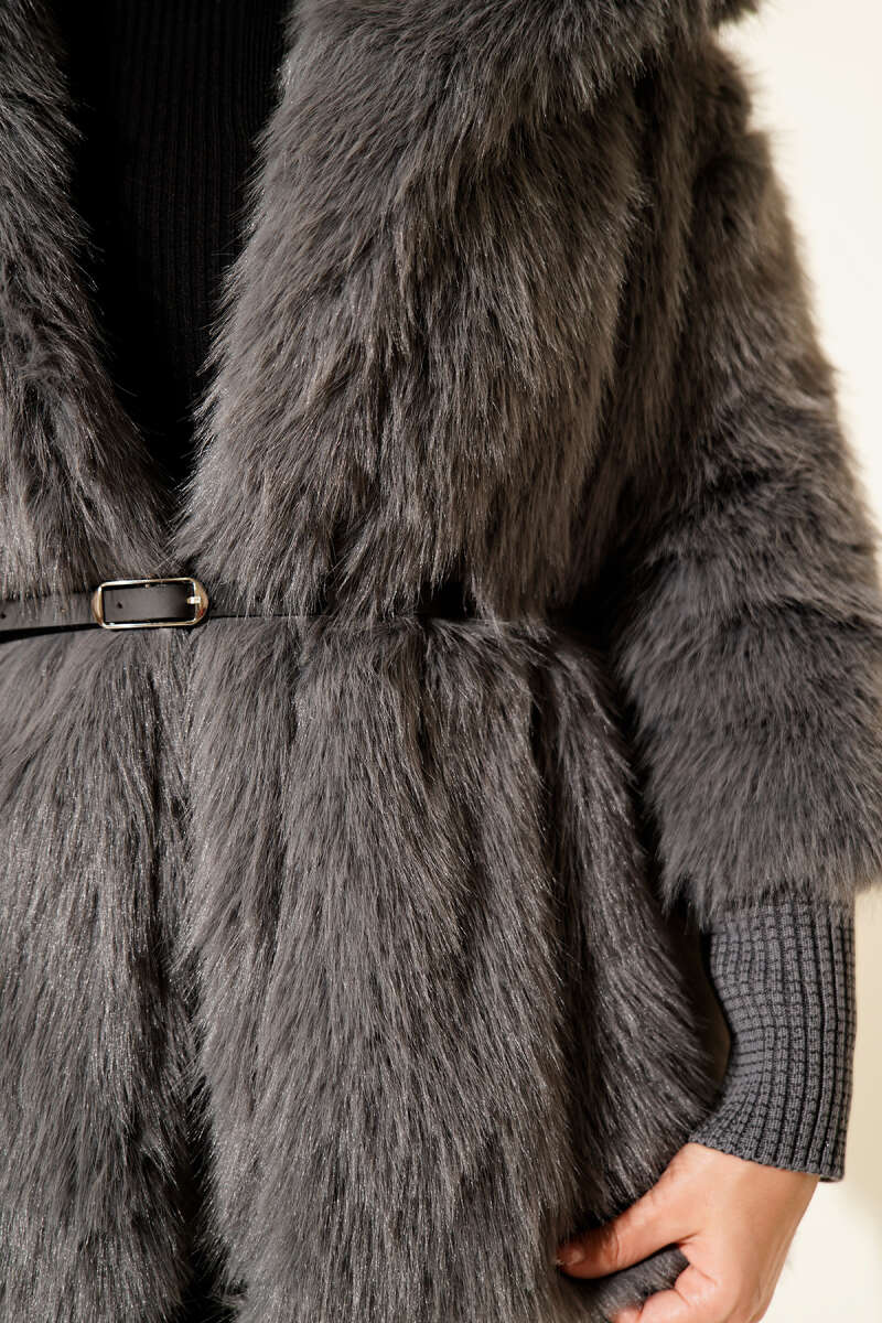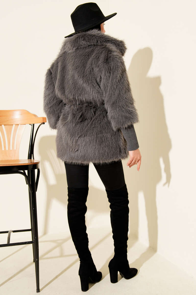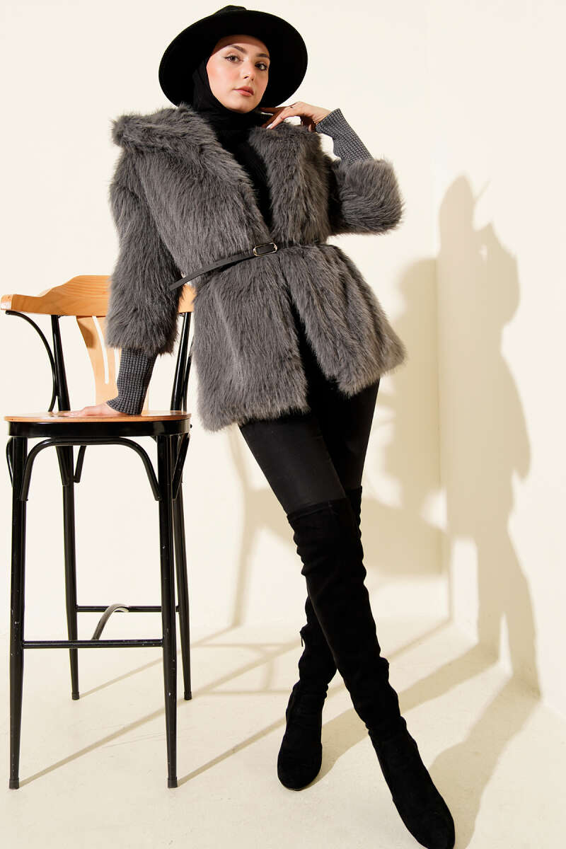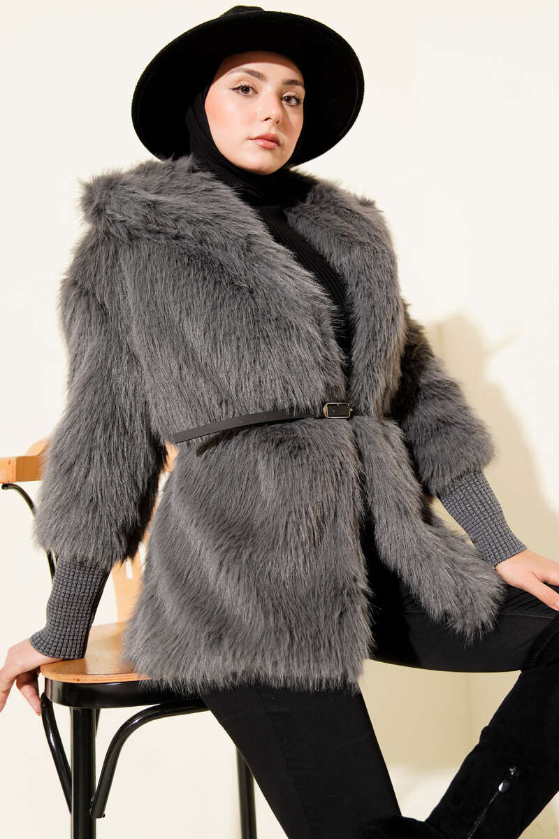 Gömlek Yaka Kürklü Kapitone Mont Siyah