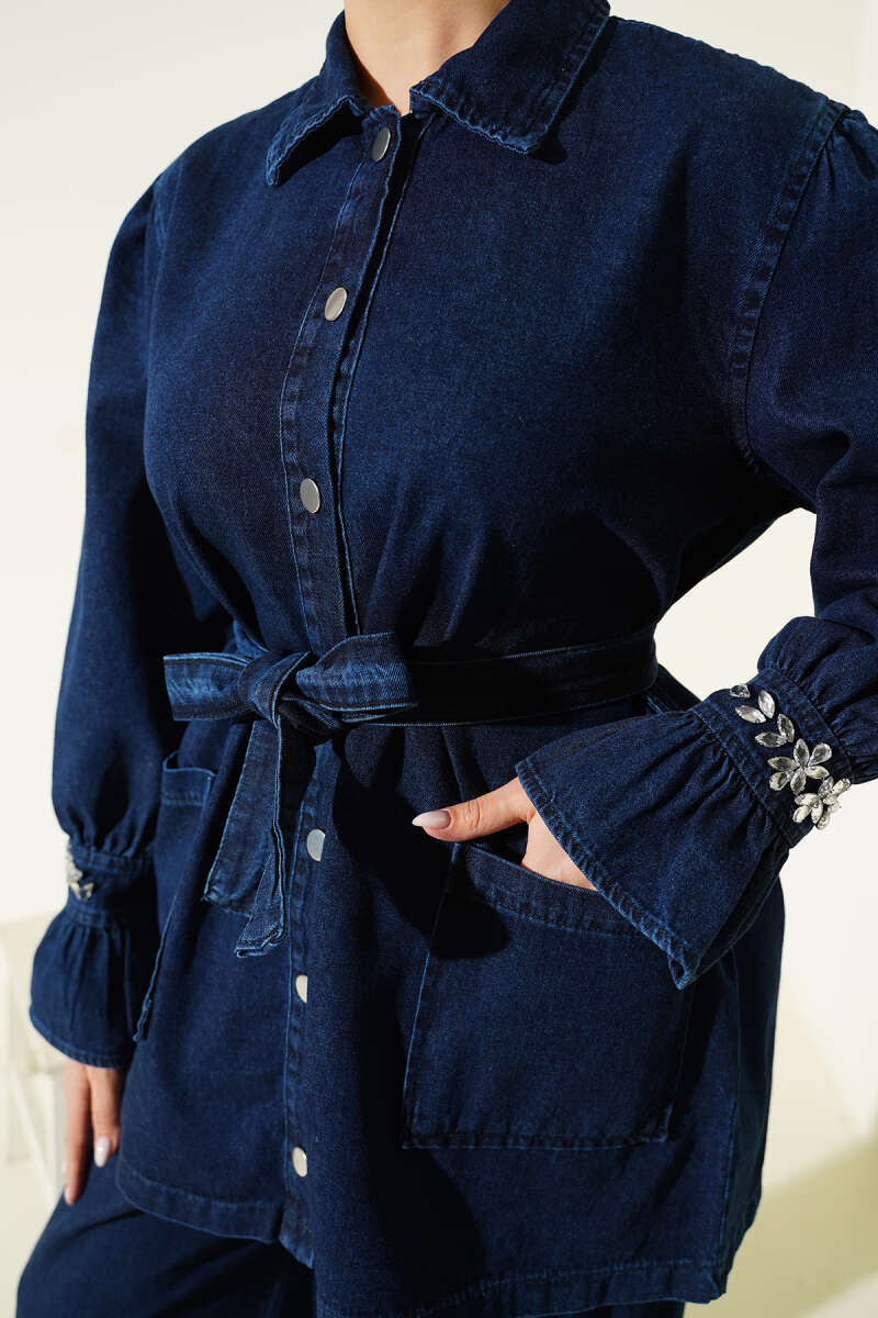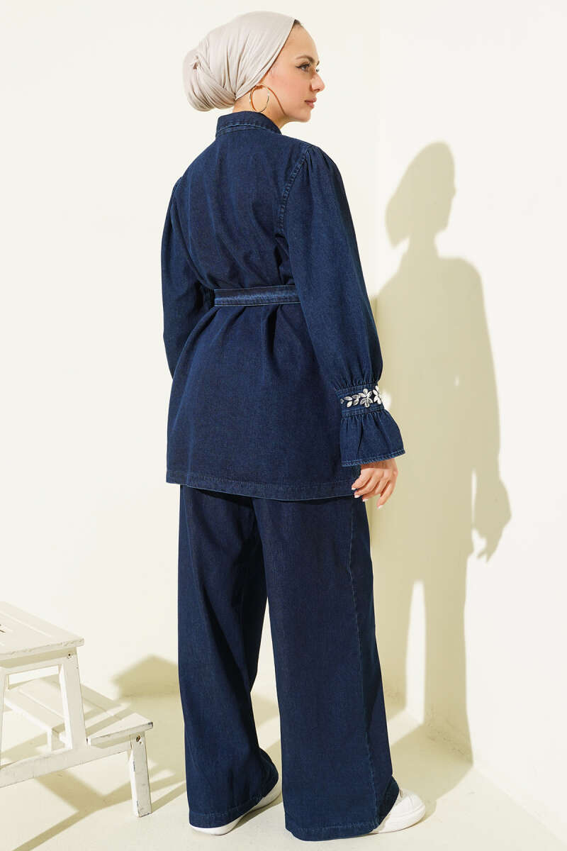 Bilek Taşlı Metal Düğmeli Kot İkili Takım Lacivert