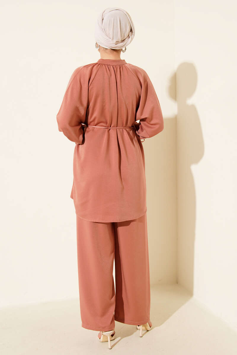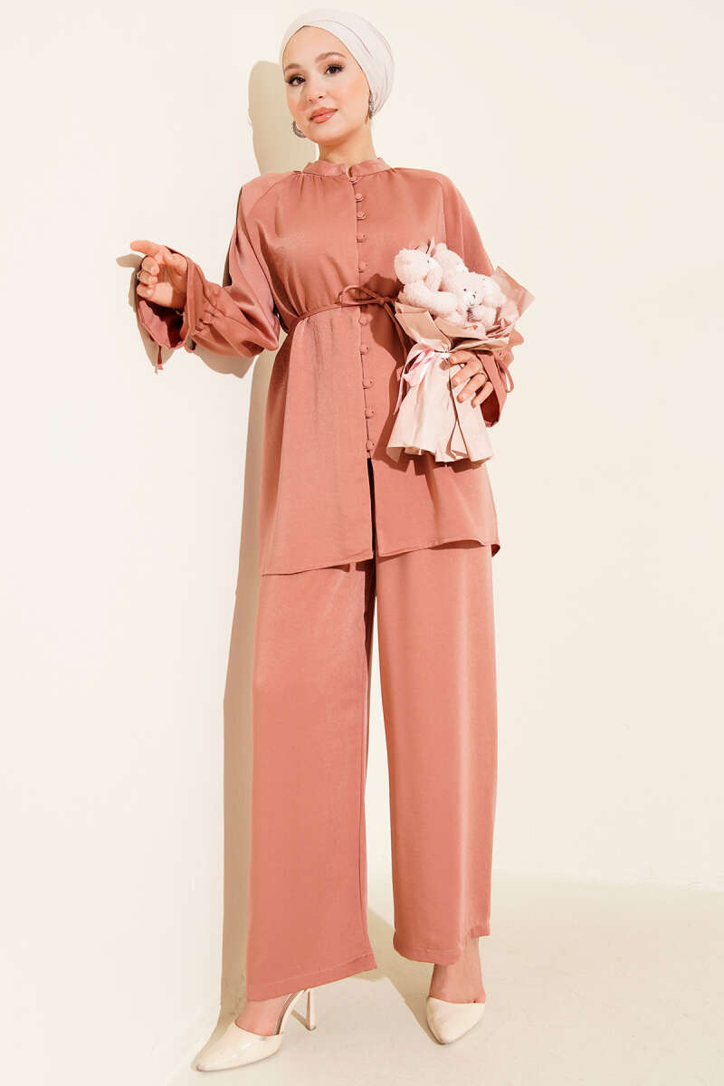 Bilek Tünelli Brit Düğmeli İkili Takım Gül Kurusu
