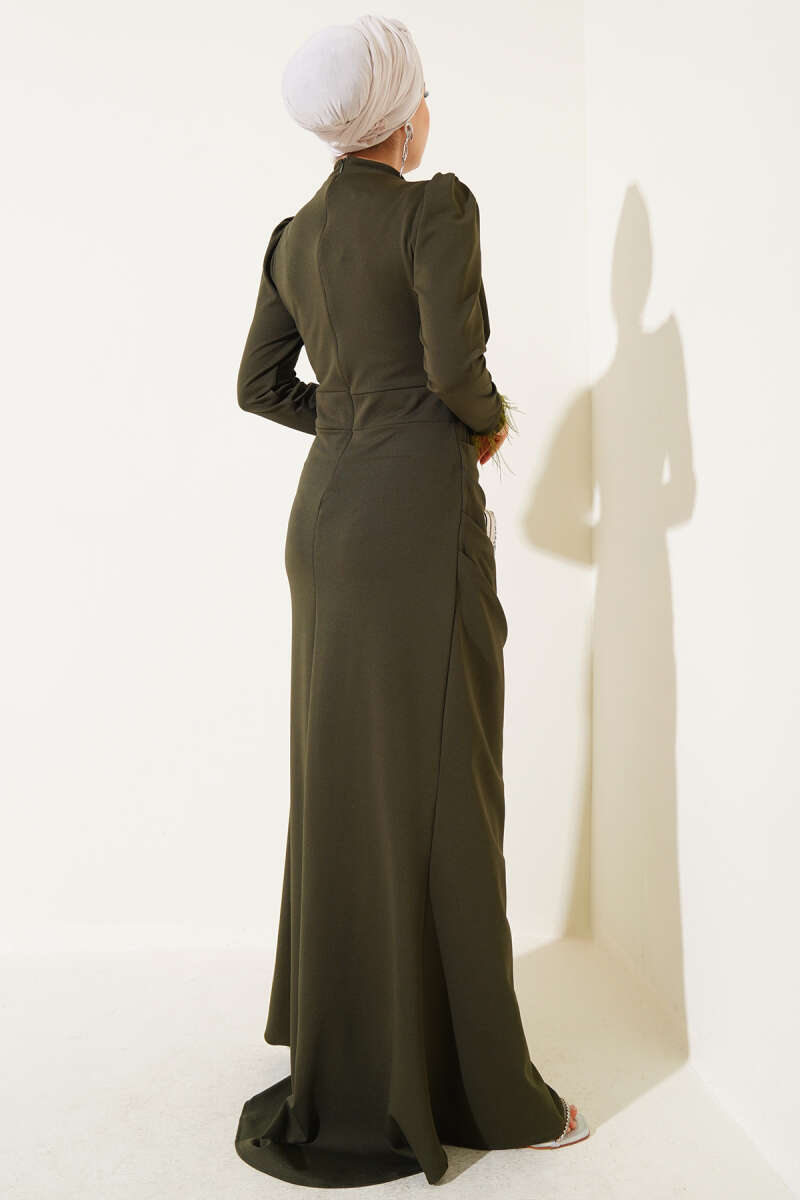 Omuz Pelerinli Taş Detaylı Abiye Elbise Siyah