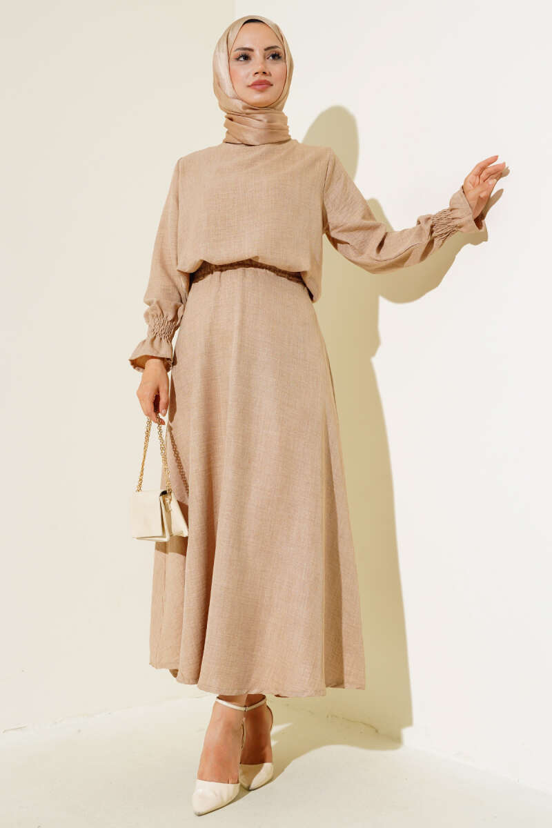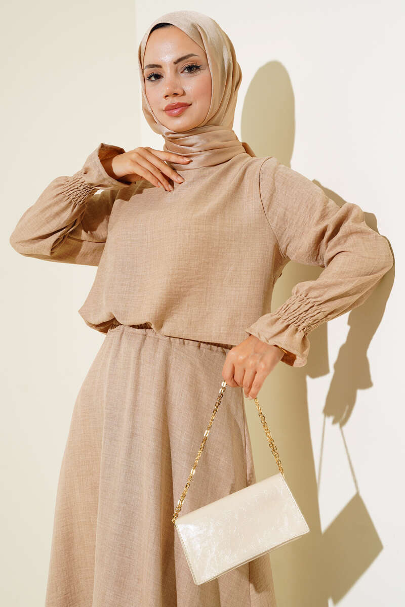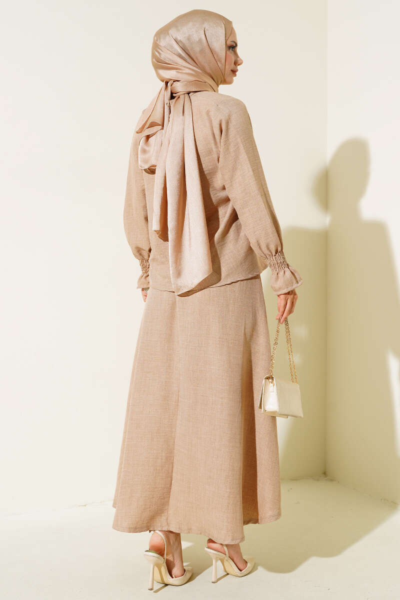 Tek Düğmeli Kuşaklı Dabıl İkili Takım Latte