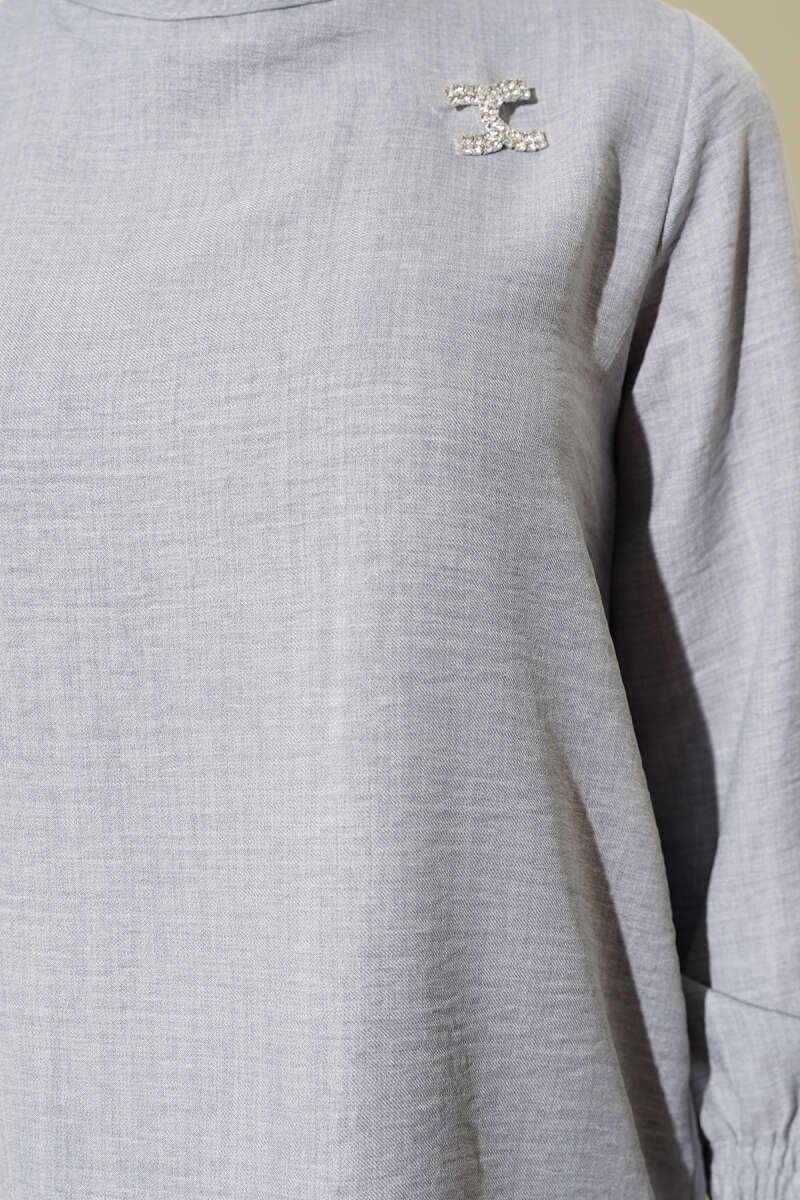 Pileli Çiçek Nakışlı Gömlek Buz Mavisi