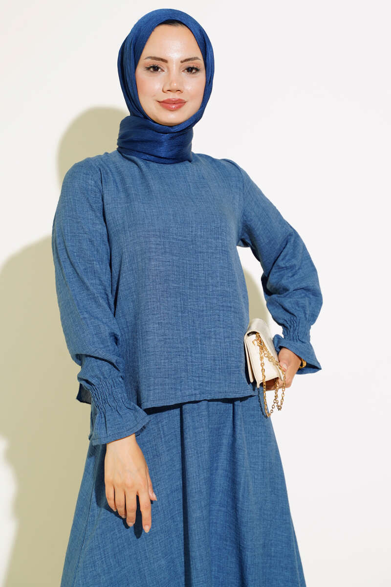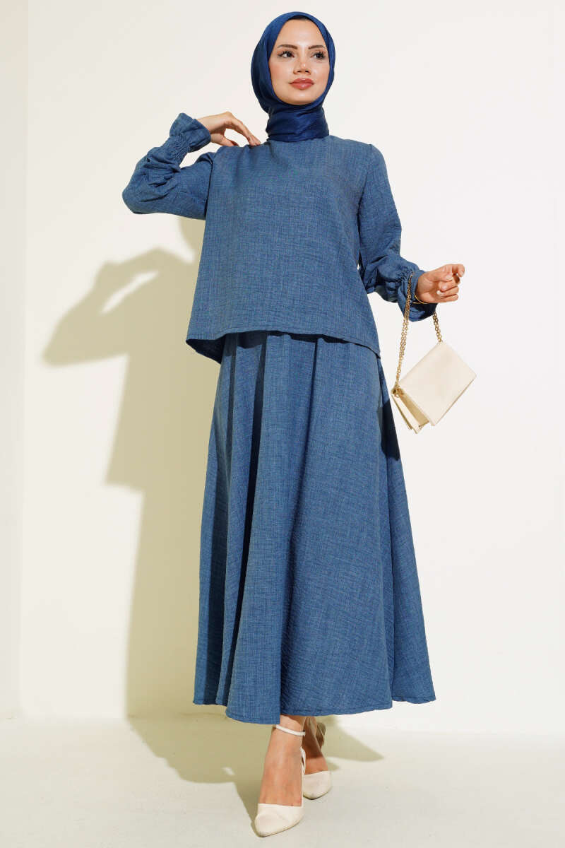Taş Cep Kapaklı Tunik İkili Takım İndigo