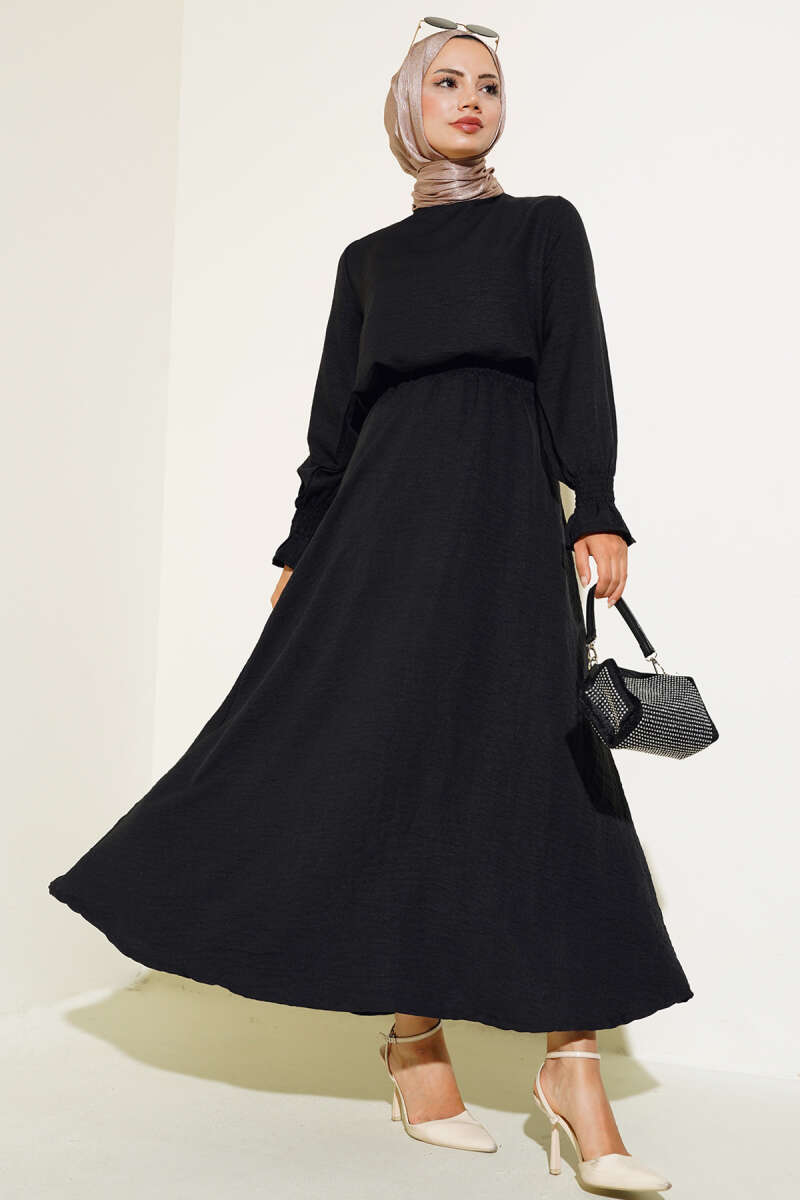 Yaz Damgaları Serisi Elbise Siyah Çiçekli