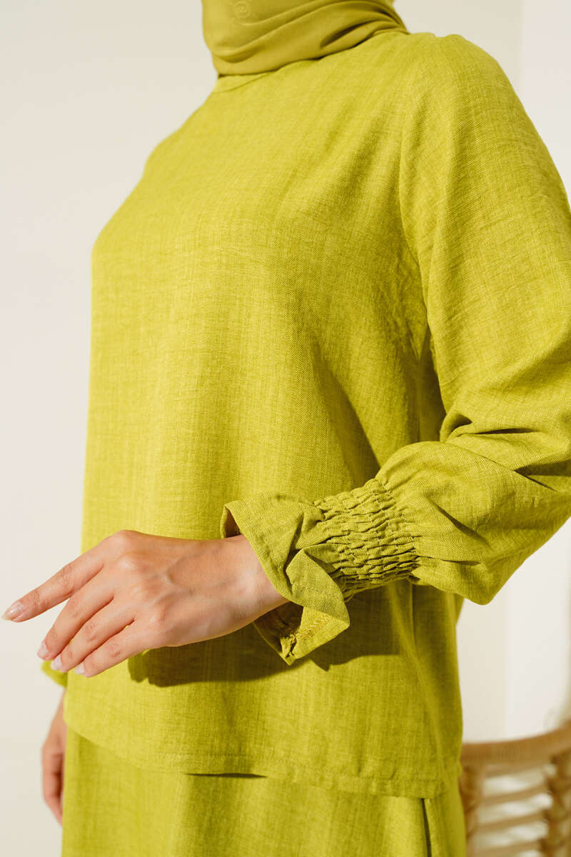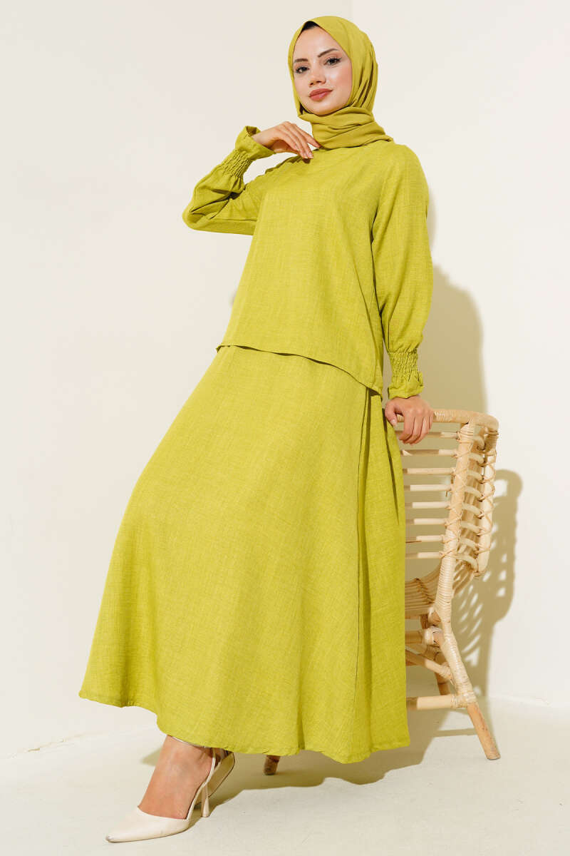 Püsküllü İp Kuşaklı İkili Takım Sarı