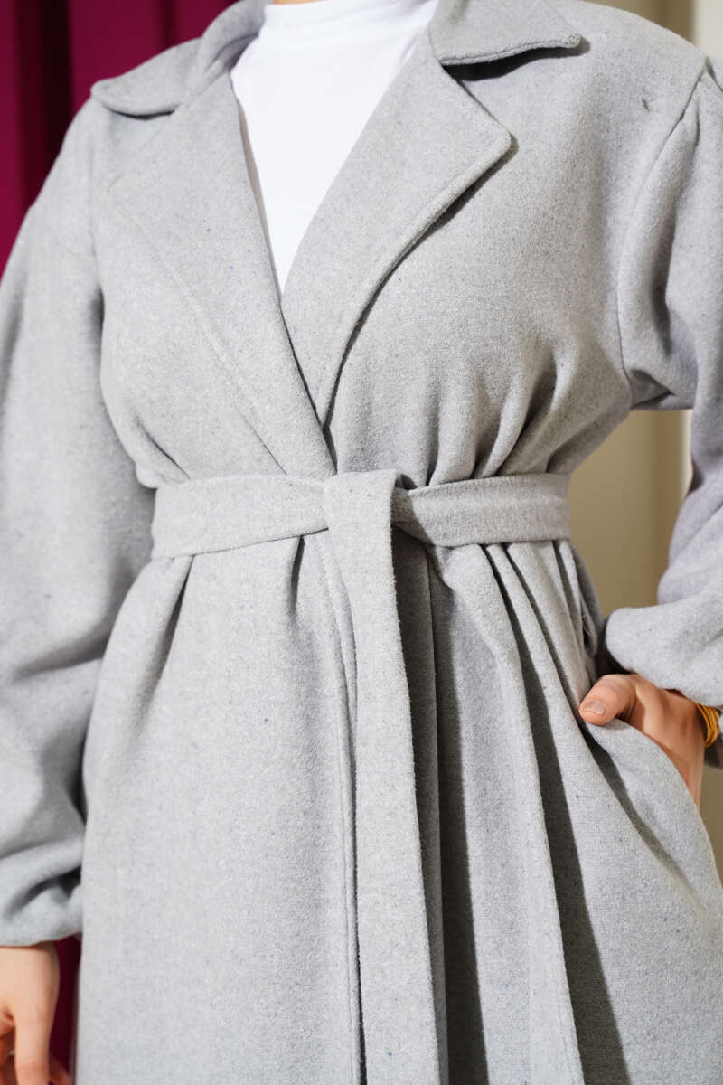 Kruvaze Yaka Kuşak Detaylı Kısa Kaşe Kaban Antrasit