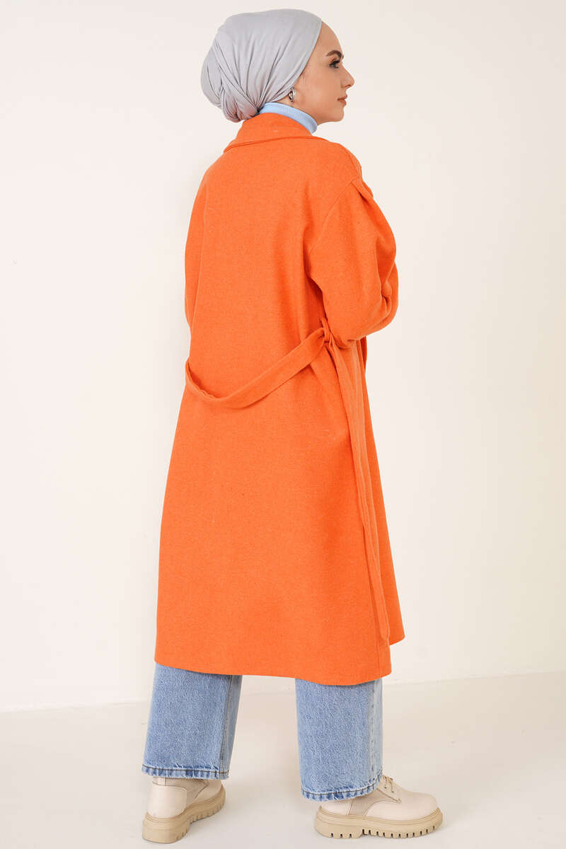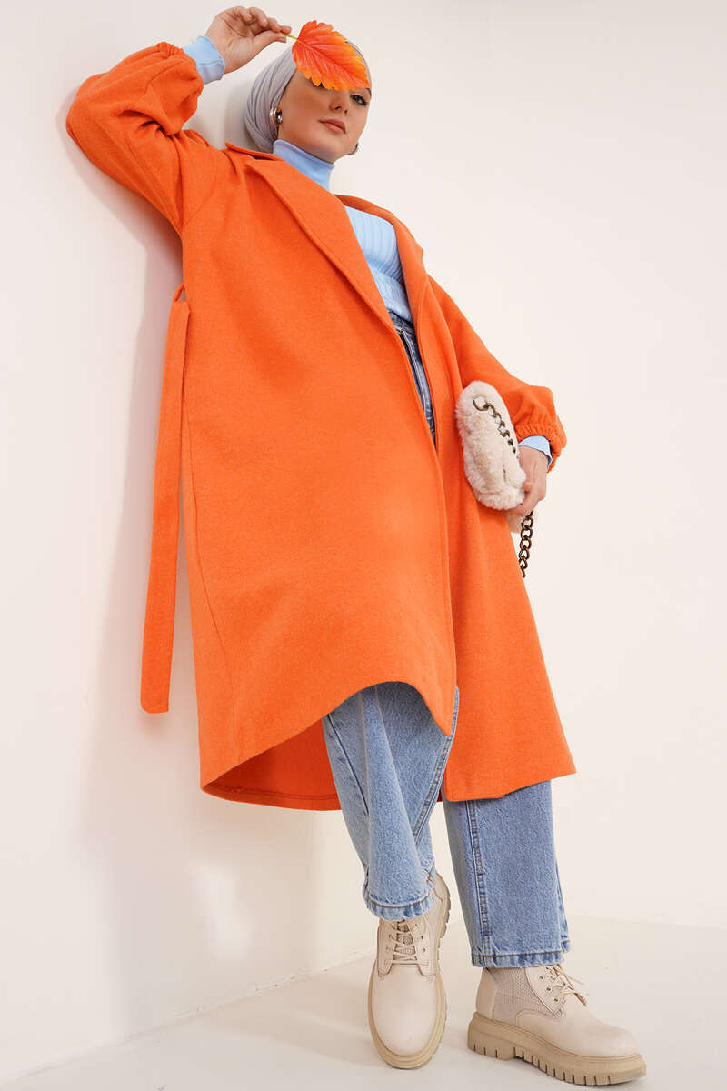 Bilekleri Lastikli Kaşe Kaban Oranj