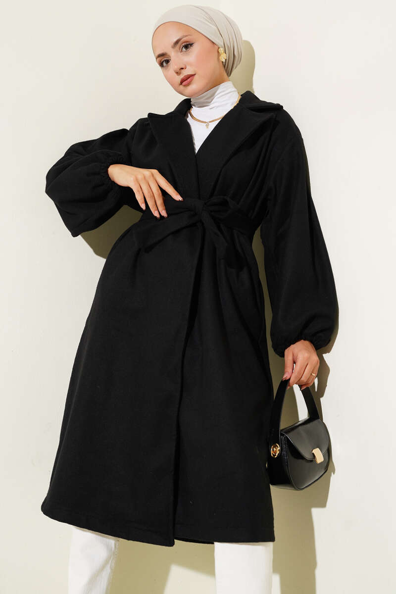 Bilekleri Lastikli Kaşe Kaban Siyah