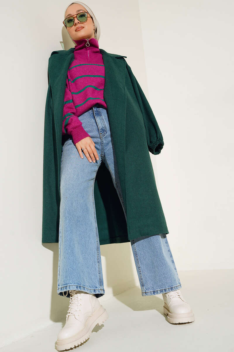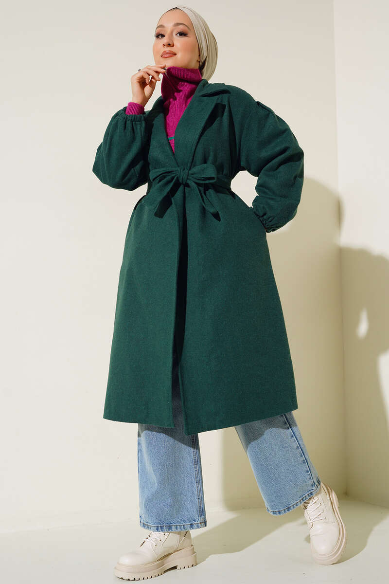 Bilekleri Lastikli Kaşe Kaban Zümrüt Yeşil