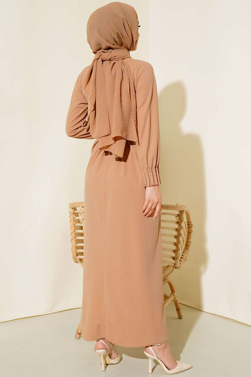 Bilekleri Nervüllü Elbise Latte