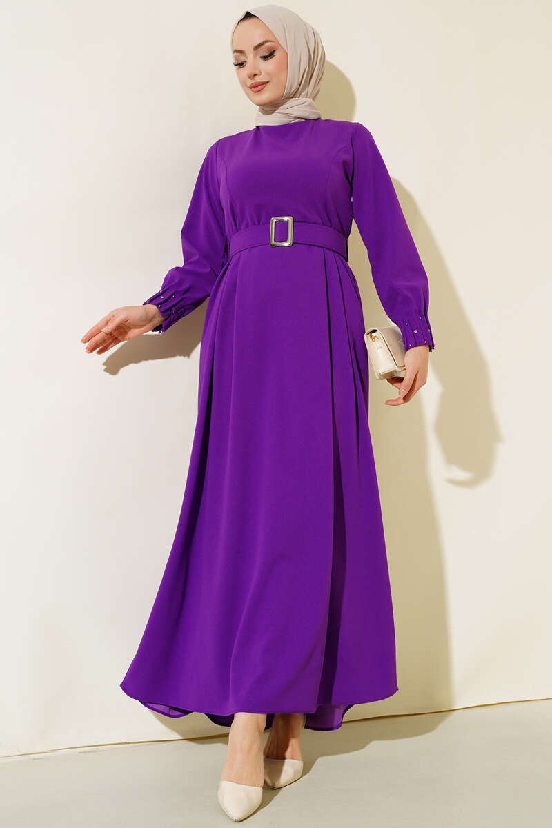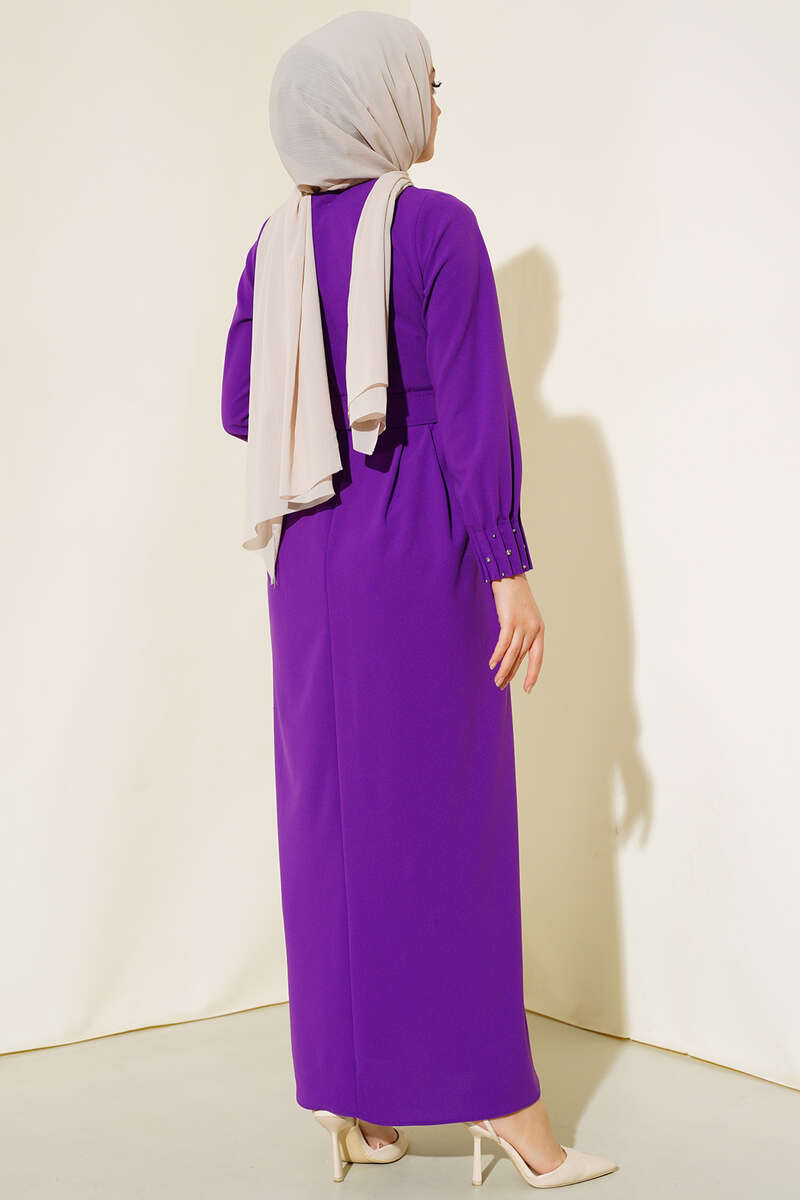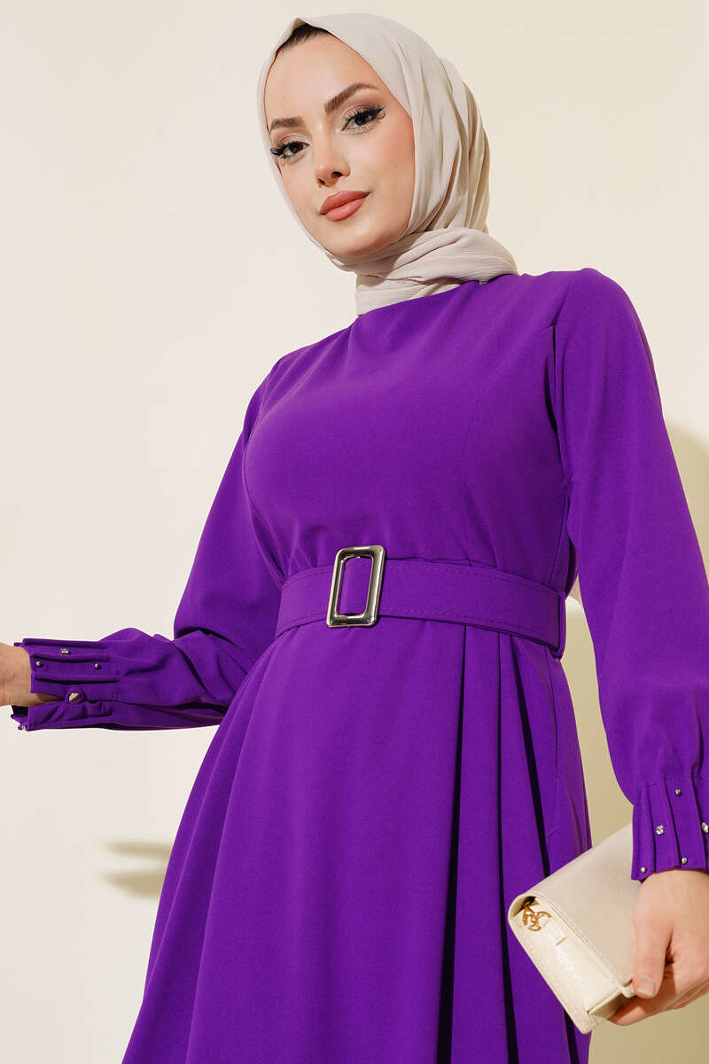 Yeni sezon elbisemiz sizlerle beraber. Elbisemizin kol bilekleri nervüllü ve taş detaylıdır. İki adet kemer köprüsü olup, kemeri vardır. Elbisemizin hem belinde fermuarı olup, hem enseden düğmelidir. Astarsızdır. Renk seçenekleriyle dolabınızda yerini beklemektedir.