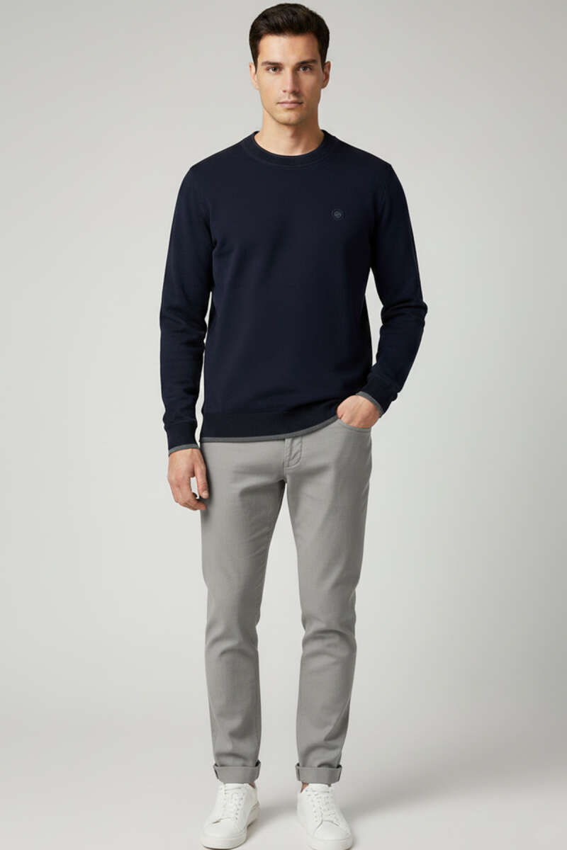 Üç İplik Bisiklet Yaka Erkek Sweatshirt Saks