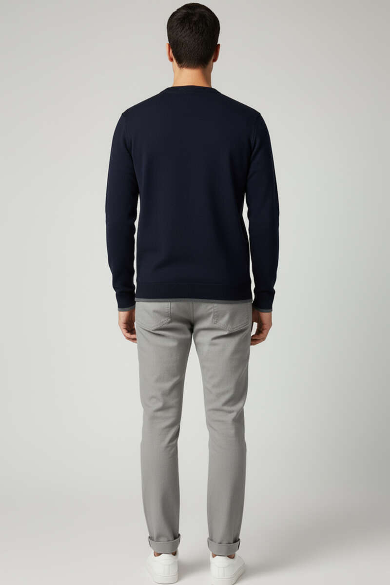 Üç İplik Bisiklet Yaka Erkek Sweatshirt Mavi
