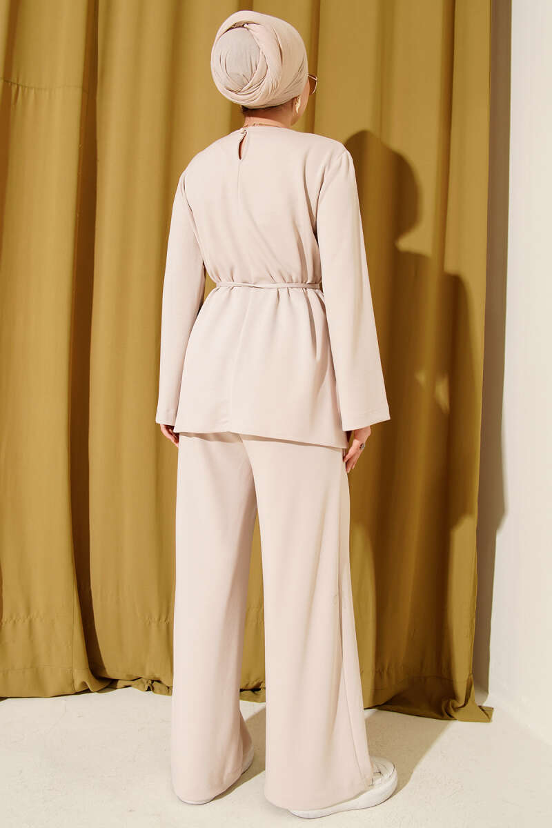 Metal Düğmeli Kemerli İkili Takım Çağla Yeşili