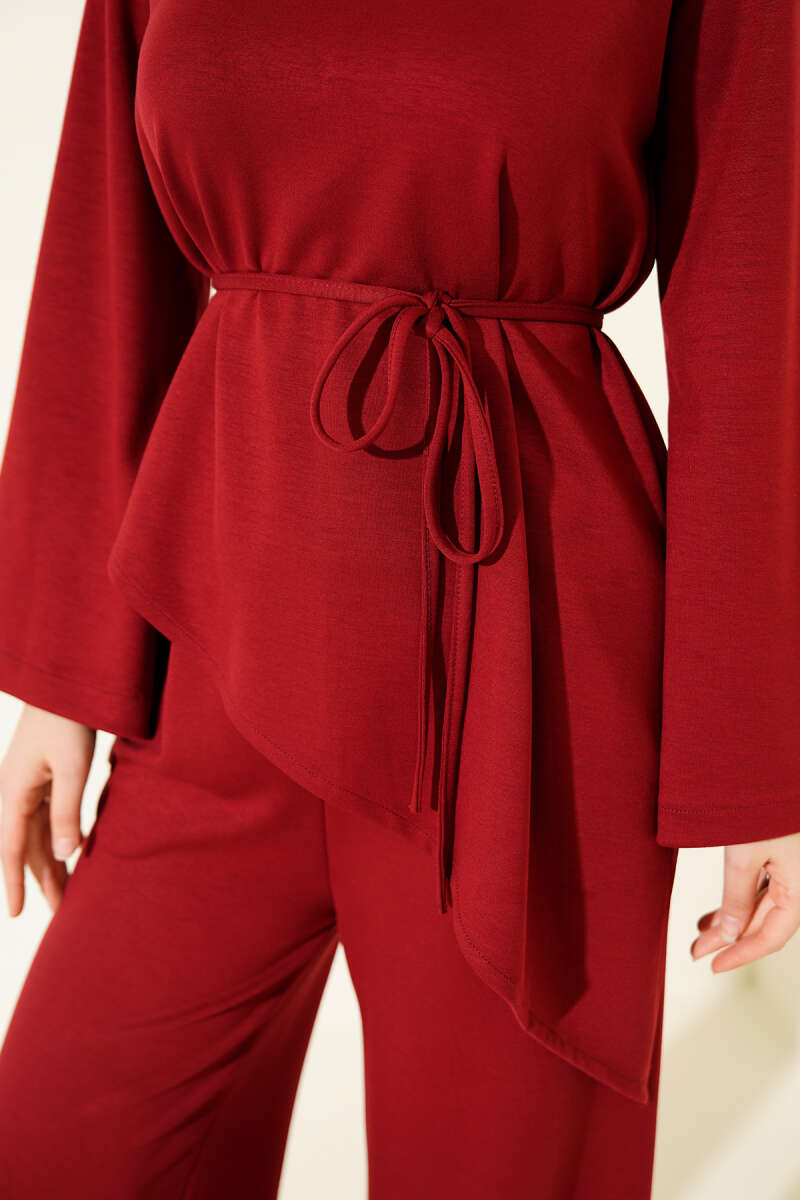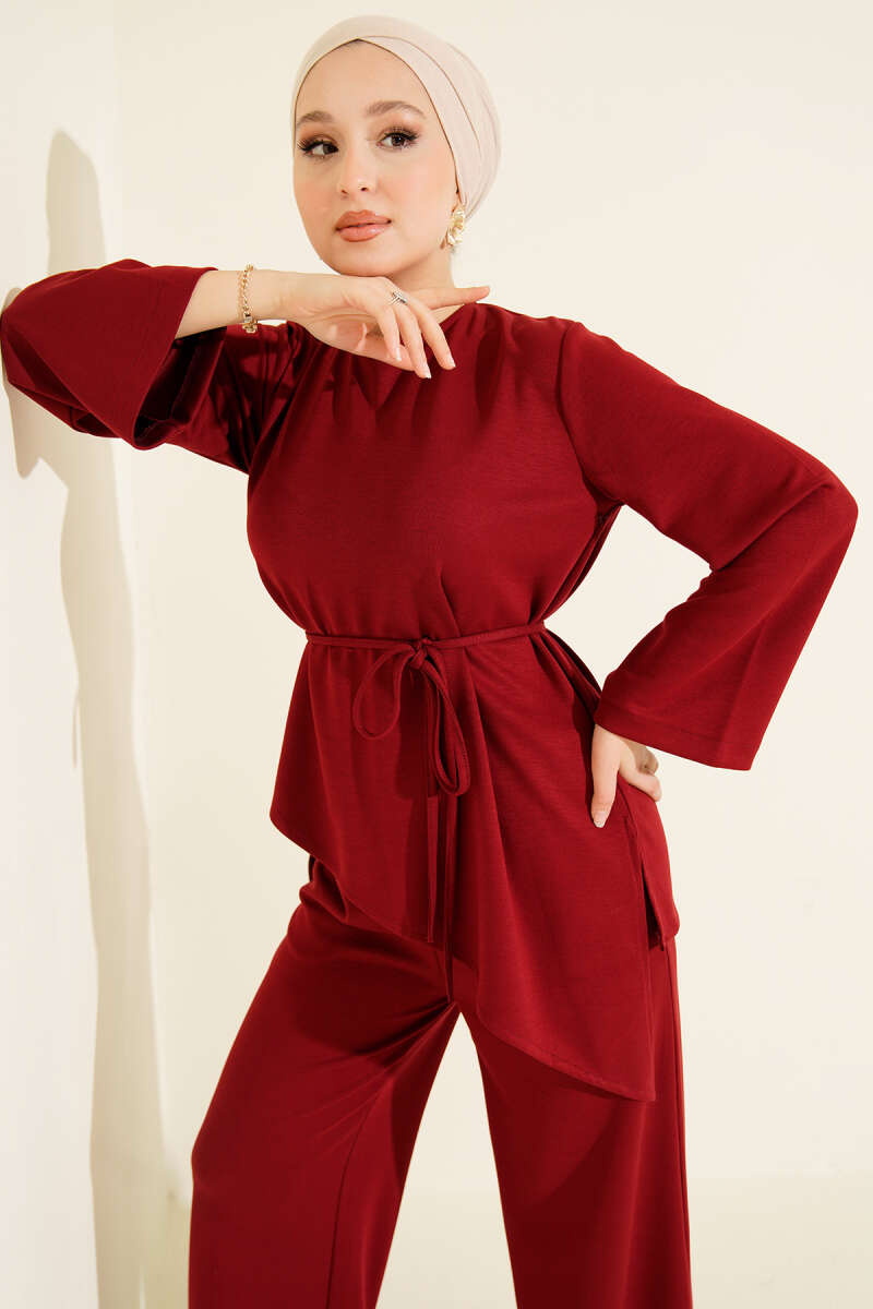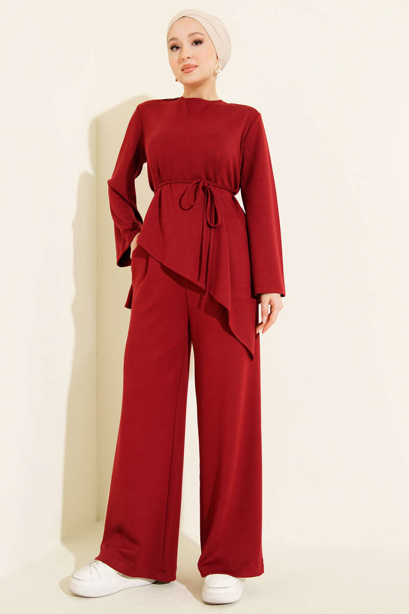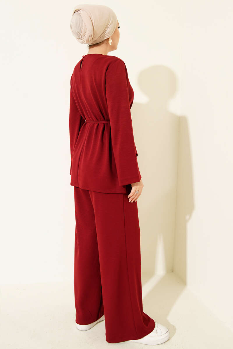 Çapraz Taş Süslemeli İkili Takım Mürdüm