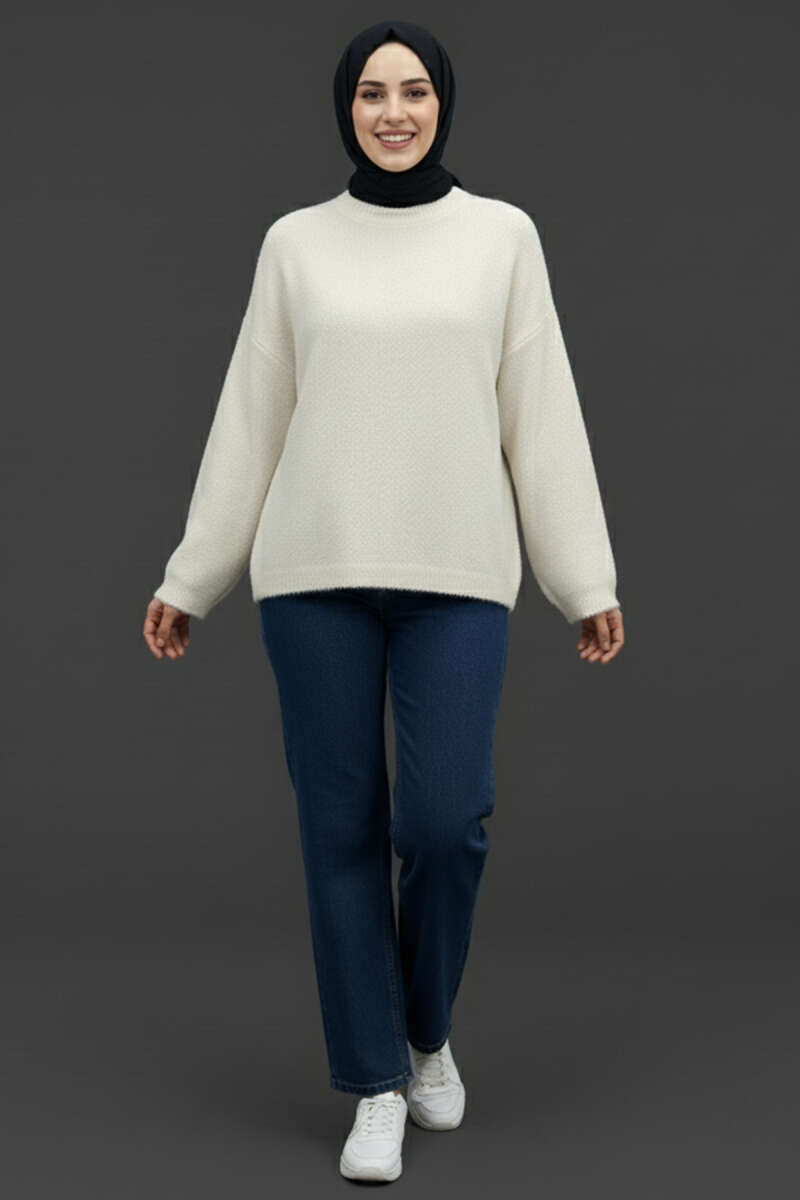 Bisiklet Yaka Basic Sakallı Kazak Beyaz