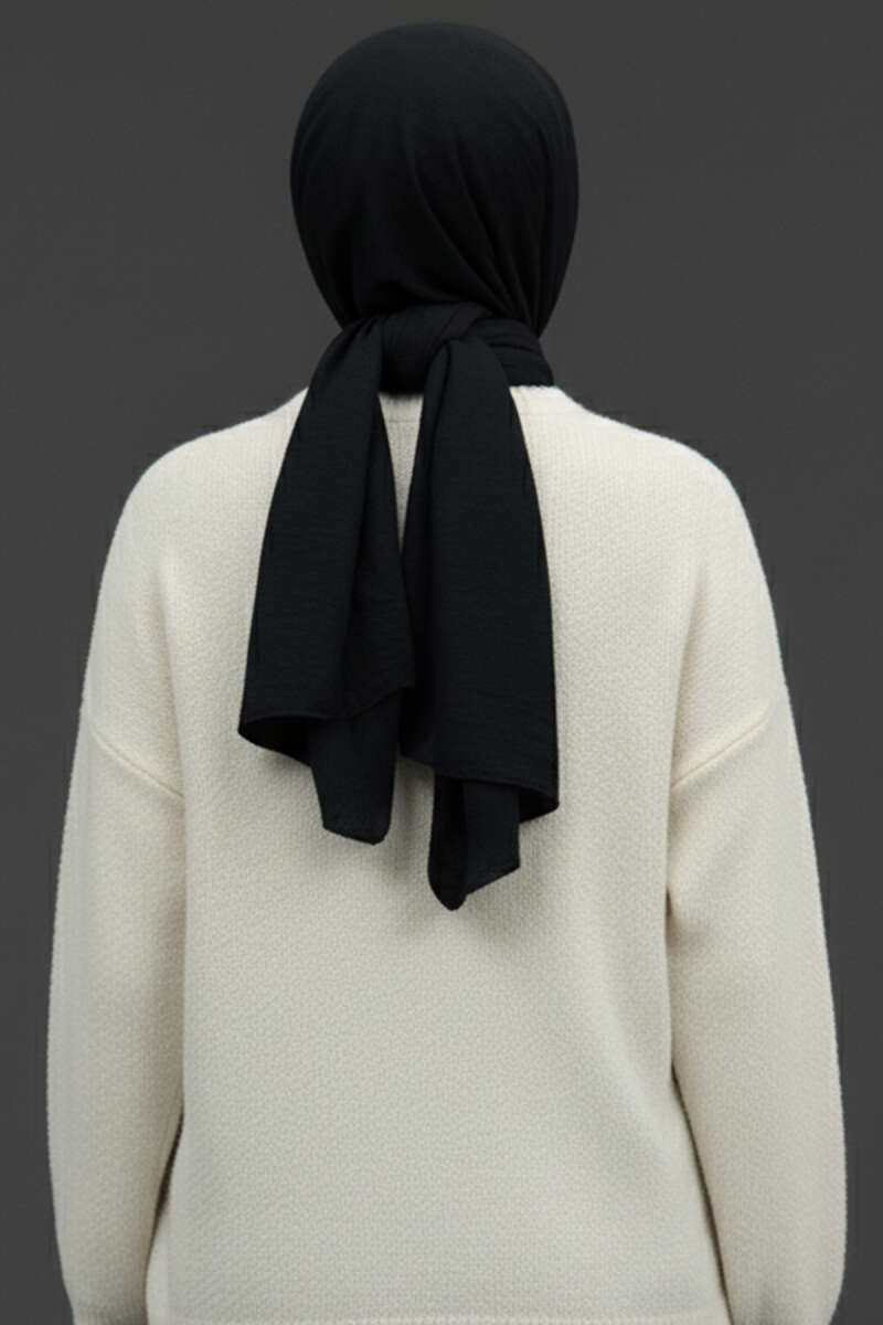 Bisiklet Yaka Sakal Detaylı Kazak Siyah