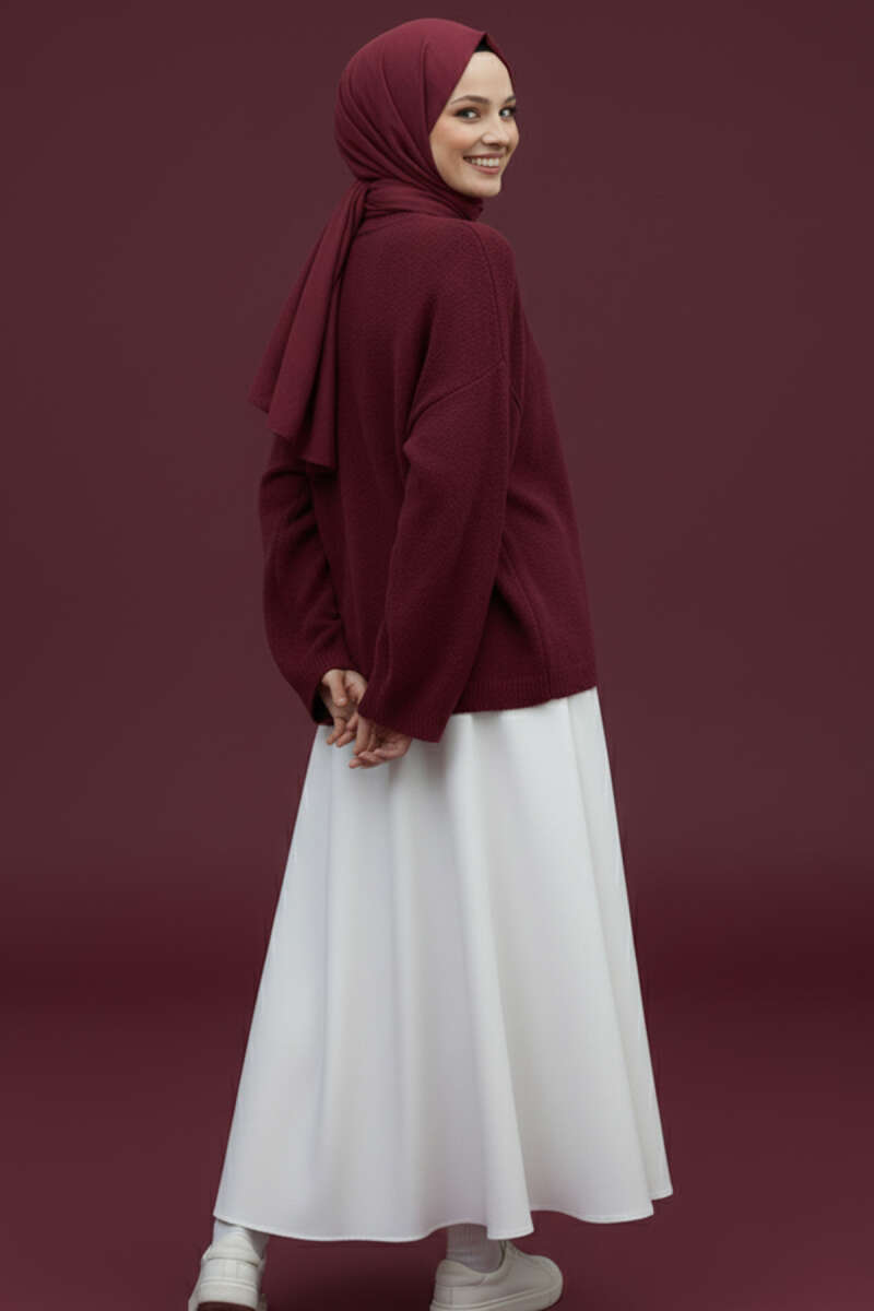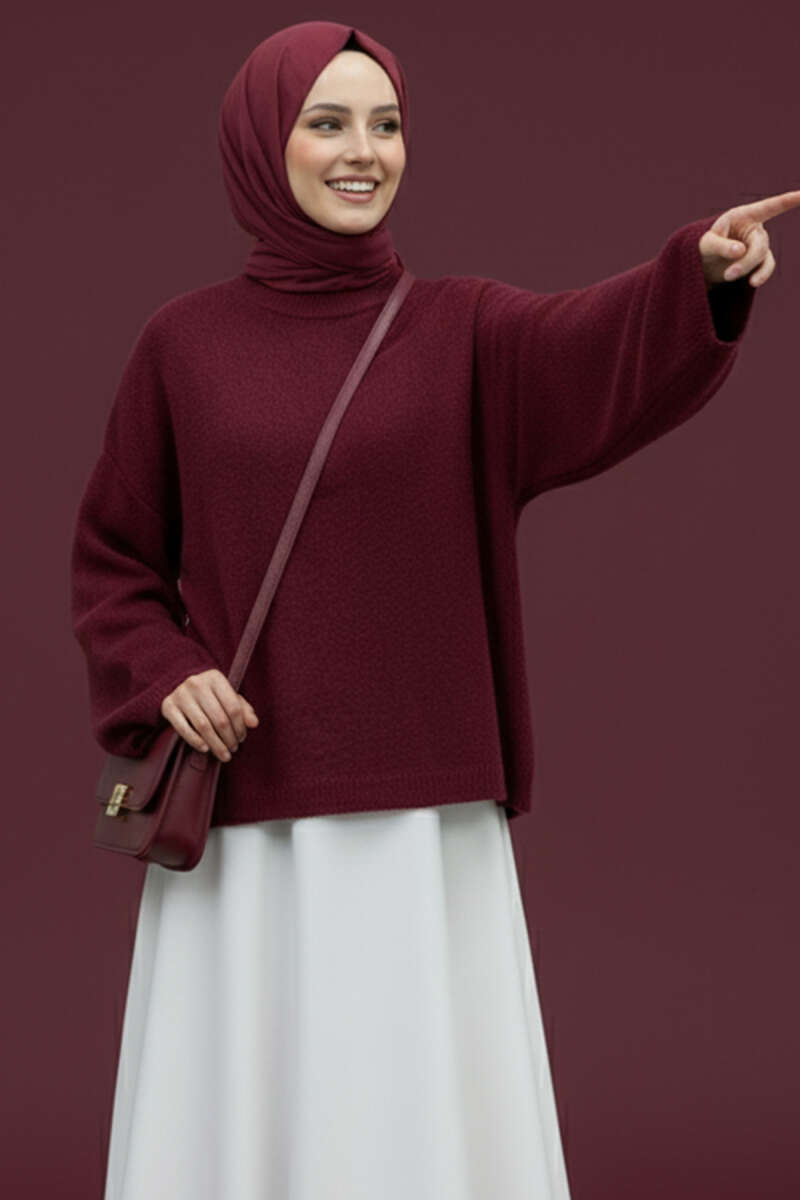 Bisiklet Yaka Basic Sakallı Kazak Bordo