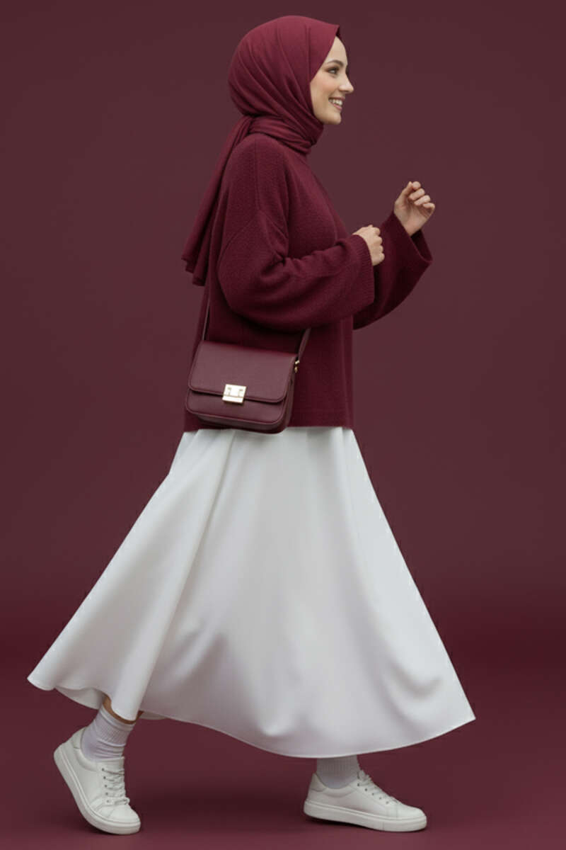 Balon Kollu Uzun Model Bordo Kaşe Kaban