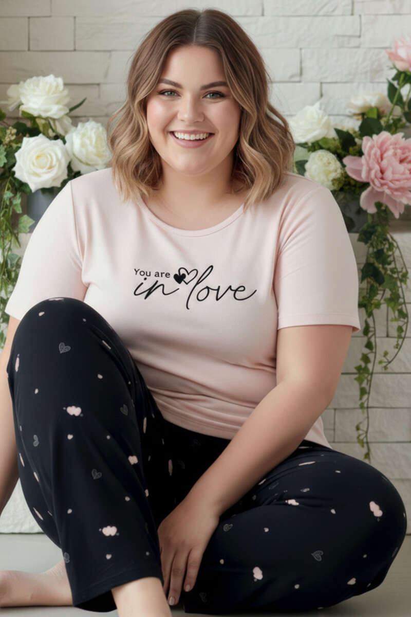 Bisiklet Yaka Baskılı Büyük Beden Pijama Takımı Yavru Ağzı