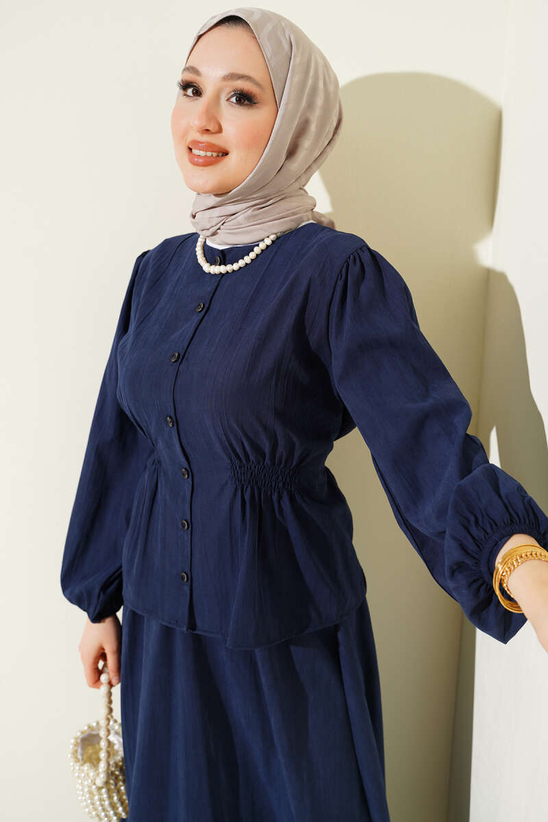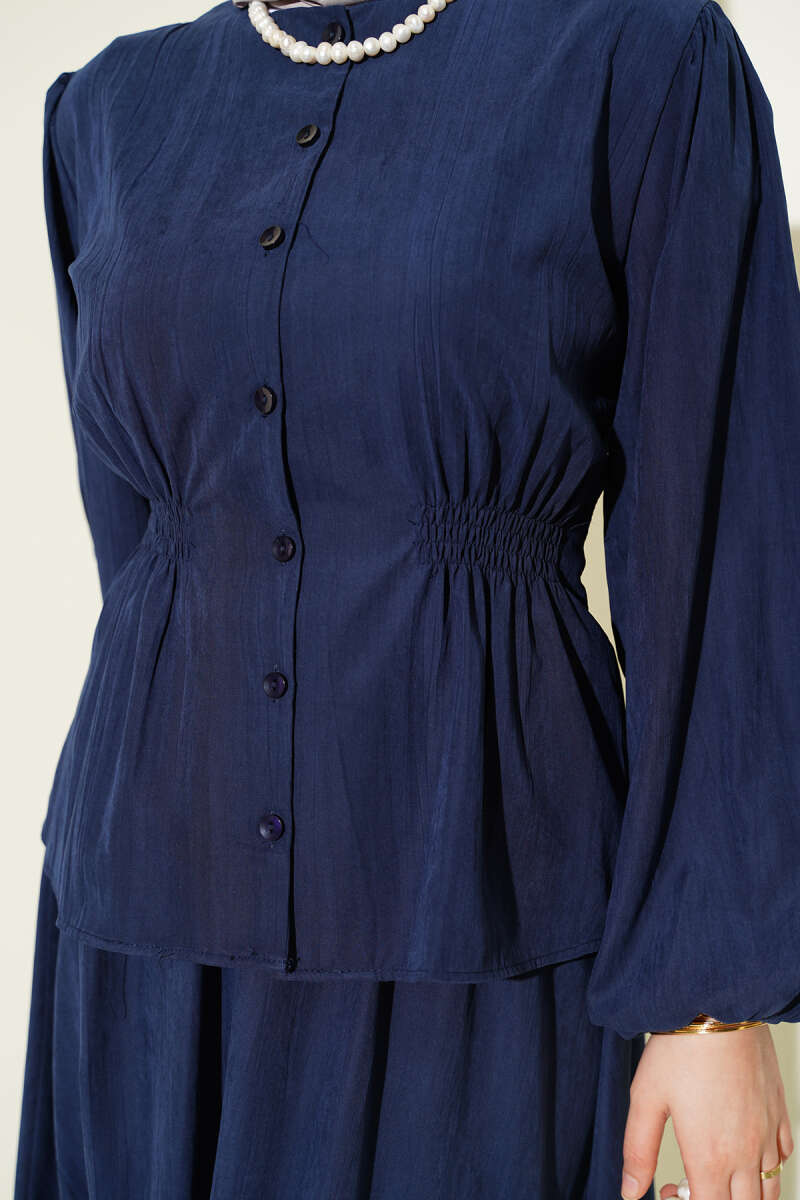 Bisiklet Yaka Bel Lastikli Takım Lacivert