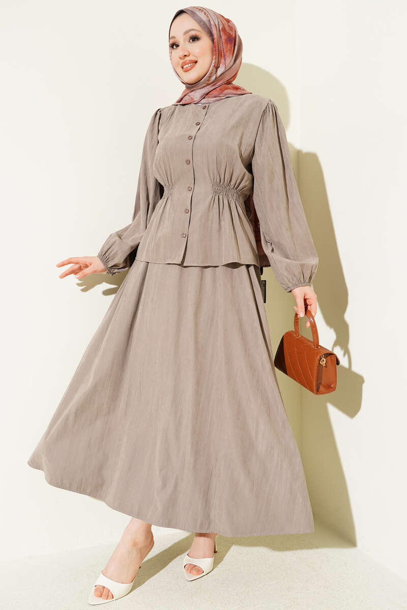 Göz yormayan asil rengi ve zarif detaylarıyla günün her anında size eşlik edecek bu tasarım, hem günlük koşturmacanızda hem de ofis şıklığında en büyük kurtarıcınız olacak. Ayrı ayrı da kombinleyebileceğiniz bu parçalar, gardırobunuzun vazgeçilmezi olmaya aday.