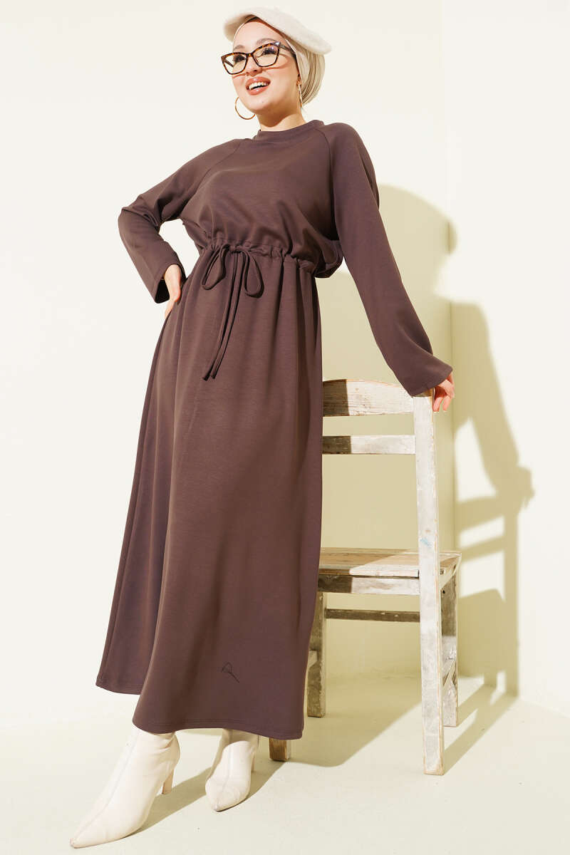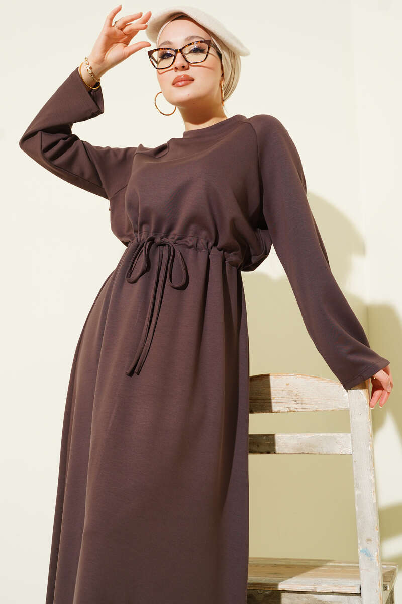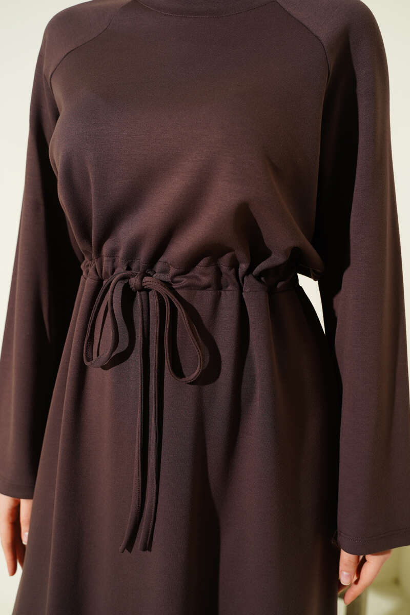Bisiklet Yaka Bel Tünel Detaylı Elbise Bordo