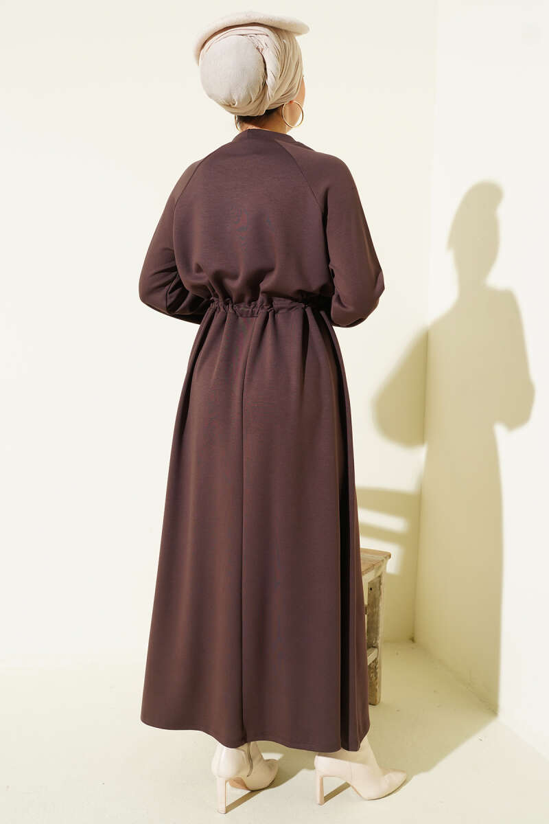 Bel Büzgü Detaylı Abiye Elbise Kahve